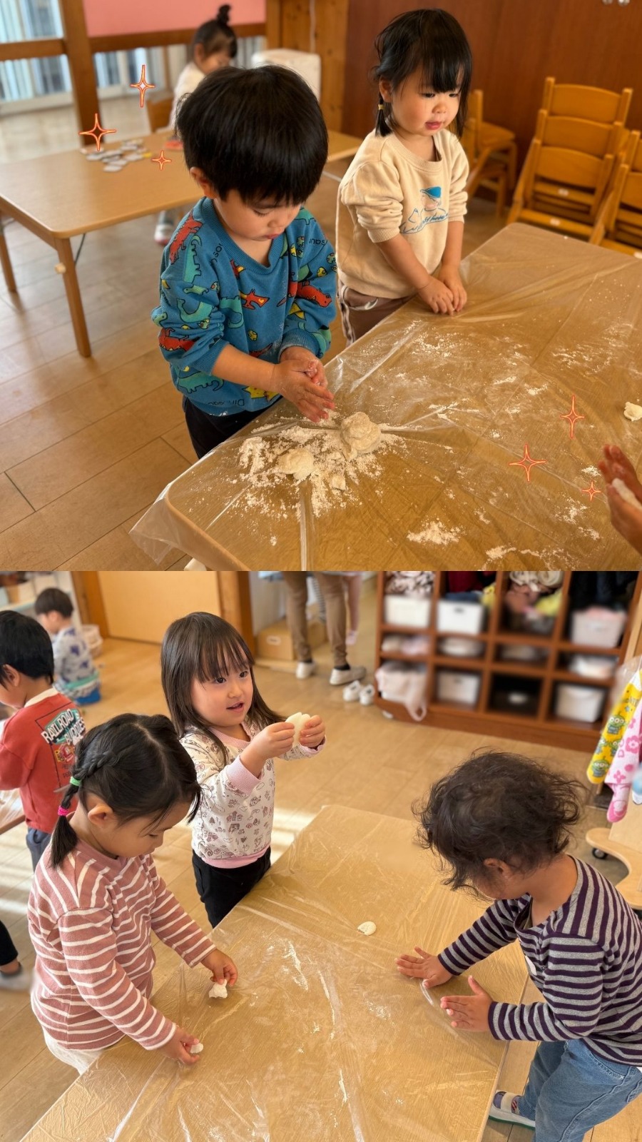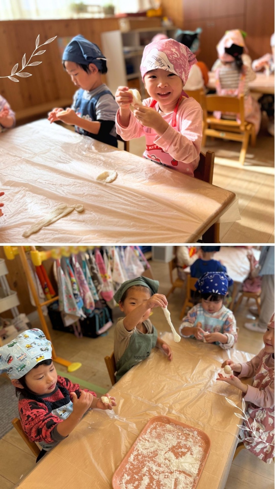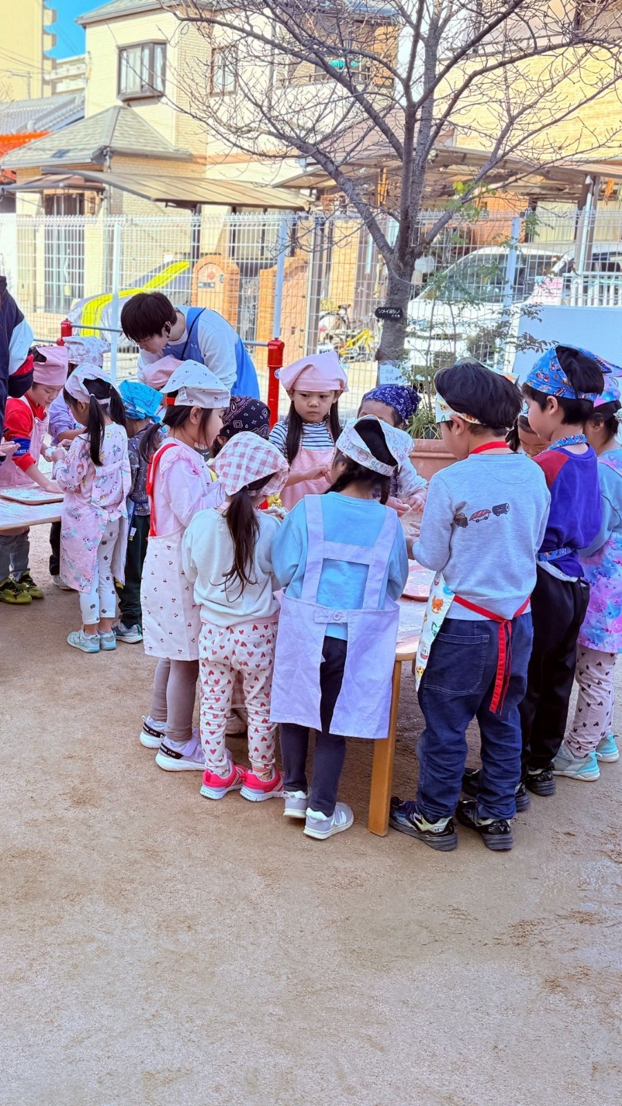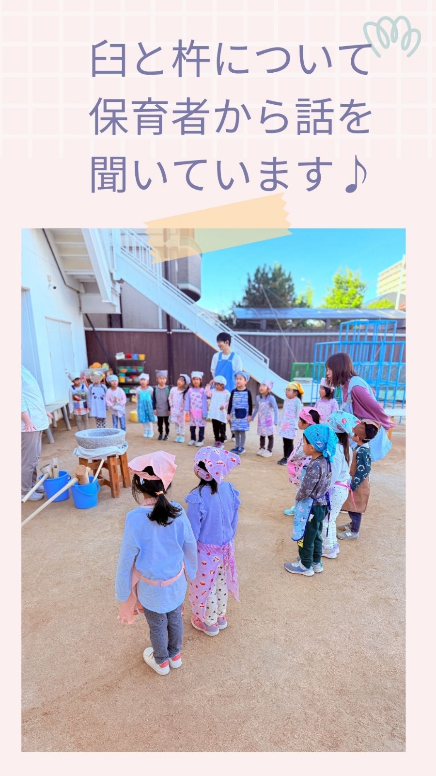 12月23日(火)おもちつき会がありました🤩「よいしょ!!」「よいしょ!!」と掛け声をかけながら友達や保育者がつくのを応援したり、杵を持って一生懸命、お餅をついたりしていました!!お餅を丸める時も「めっちゃきれいに丸めたで!!」と見せてくれていました!! 保育園の様子はこちら(インスタグラム)でご覧ください。
