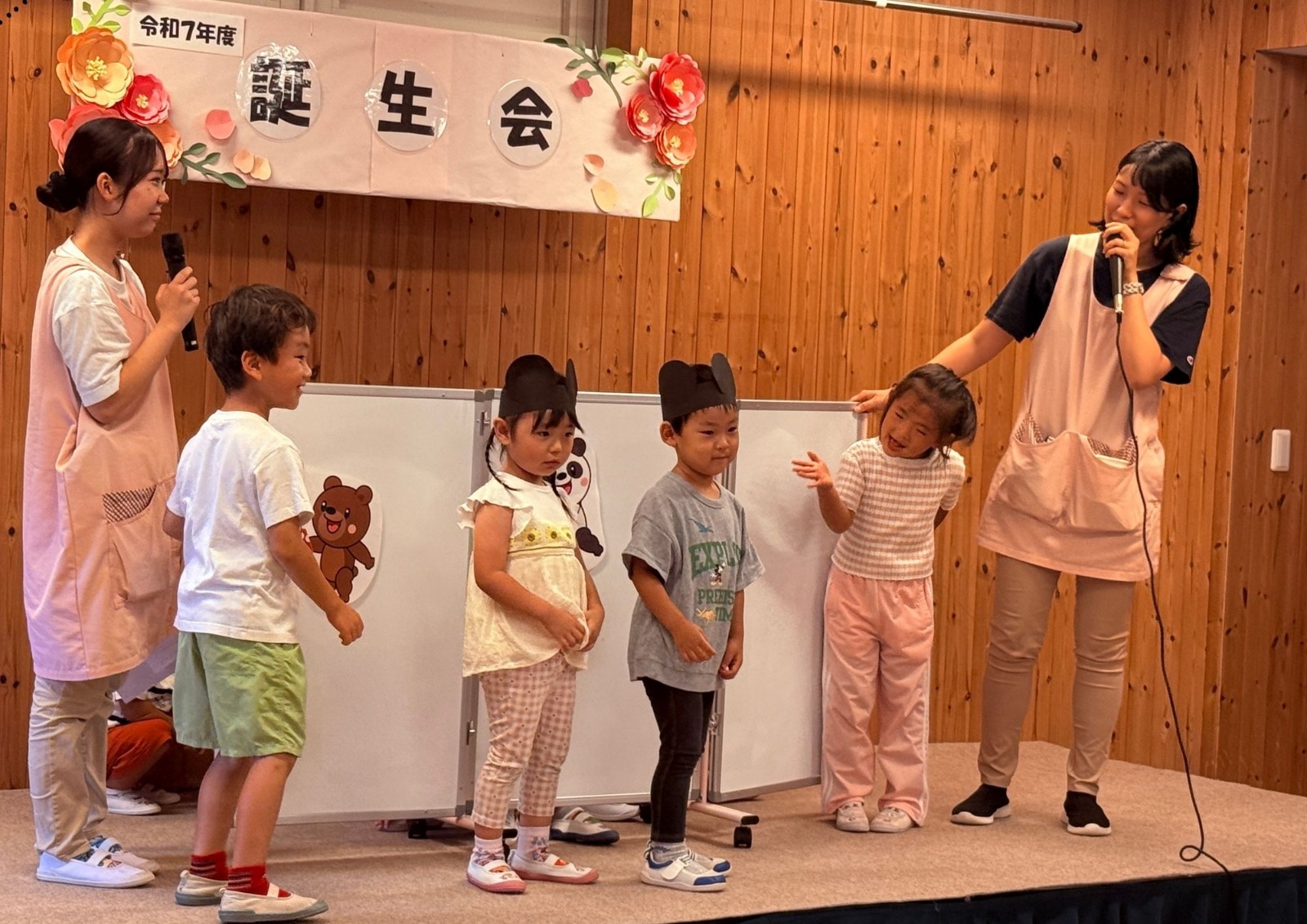 舞台に上がると自分の名前を言ったり、好きな食べ物、好きな動物、大きくなったら何になりたい?