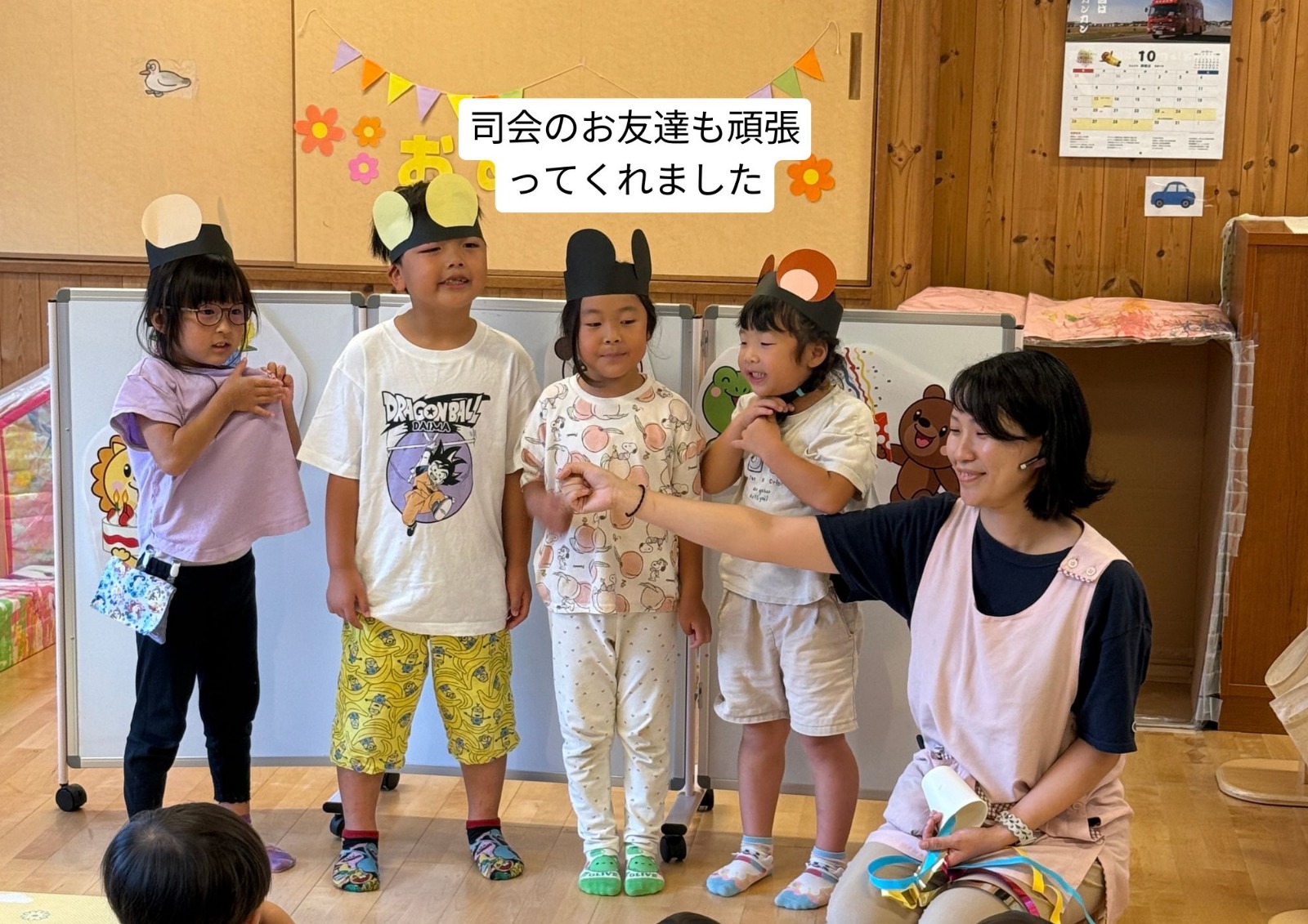 子ども達からは”シンデレラのスープ””おばけなんてないさ””むすんでひらいて”の歌やリズム遊びのプレゼント