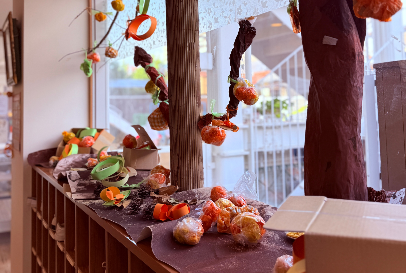 11月28日(金)から12月2日(火)まで製作展を開催しています。今年度は、異年齢児交流でミカンの木を作りました。各クラス、シール貼り・絵画などを飾っています。子ども達ならではの表現などがたくさん詰まっています。 保育園の様子はこちら(インスタグラム)でご覧ください。