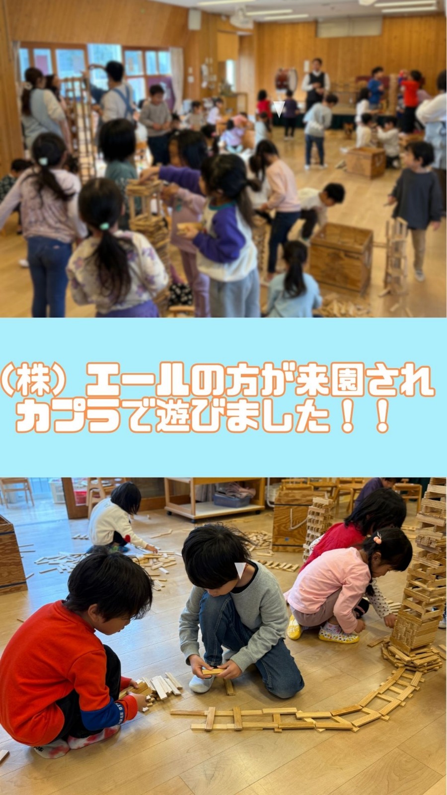 12月26日(金)エール株式会社の方に来ていただいて4・5歳児クラスの子ども達にカプラ教室を開いてくれました♪カプラを高く積み上げたり、線路や道のように長く繋げたりして楽しんで遊ぶ姿が見られました!保育者も夢中になって積み上げていました。 保育園の様子はこちら(インスタグラム)でご覧ください。
