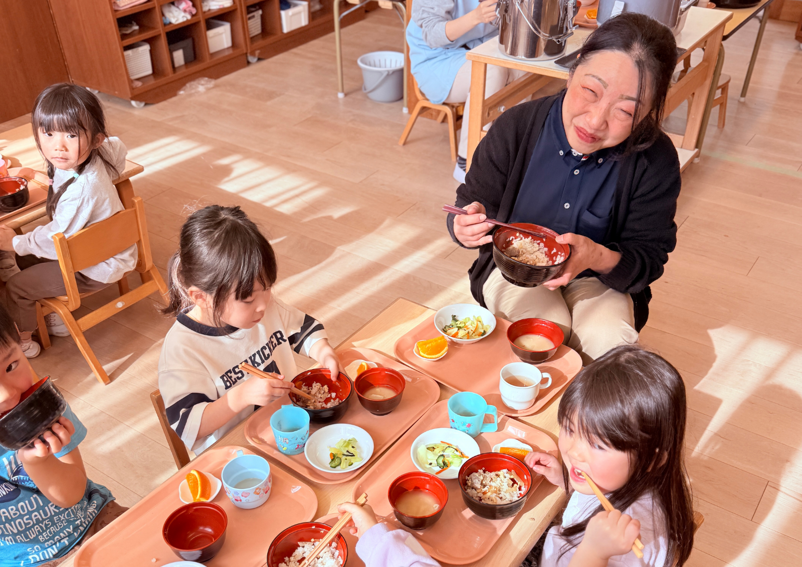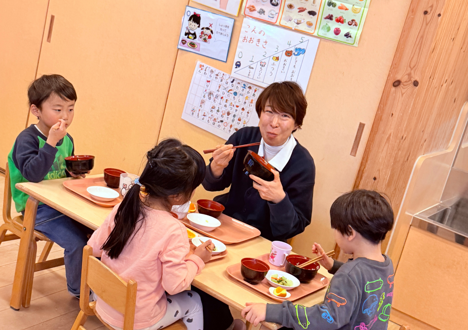 1月19日(金)法人内出向研修 高齢事業部より2名の職員がきました。乳児クラスの子ども会の予行練習を見てもらったり、幼児クラスでは子ども達とご飯を一緒に食べたりしてもらいました。 保育園の様子はこちら(インスタグラム)でご覧ください。