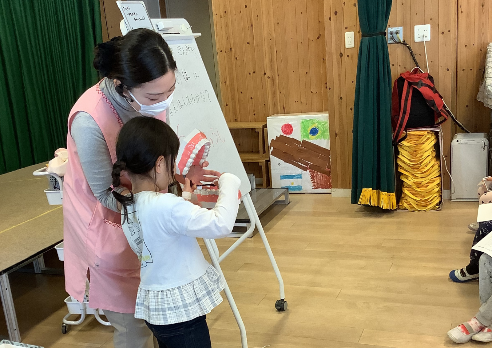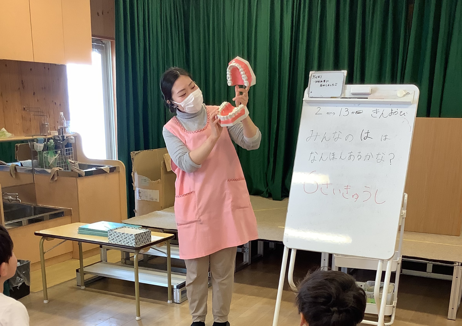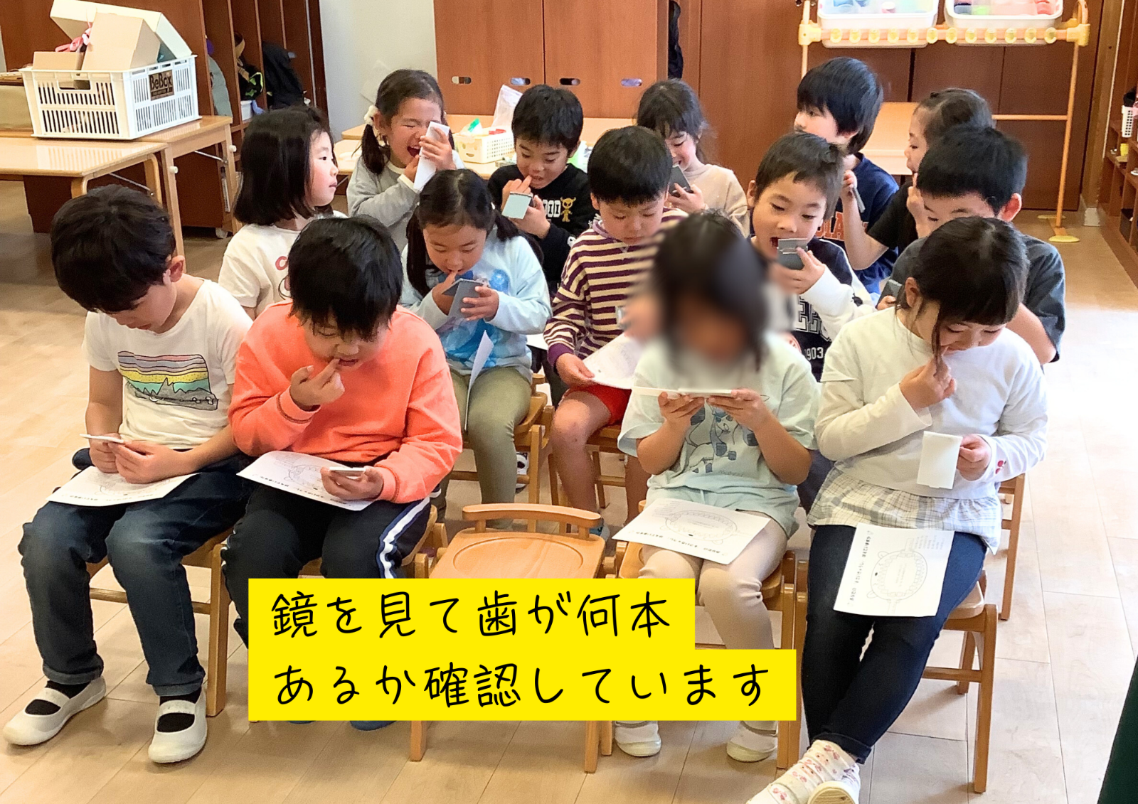 2月13日(金)看護師が5歳児クラスの子どもに6歳臼歯の話をしてくれました★実際に鏡を見て歯が何本なるのかを見てみたり歯の模型を見てどこから6歳臼歯が生えてくるのかを教えてもらいました!! 保育園の様子はこちら(インスタグラム)でご覧ください。