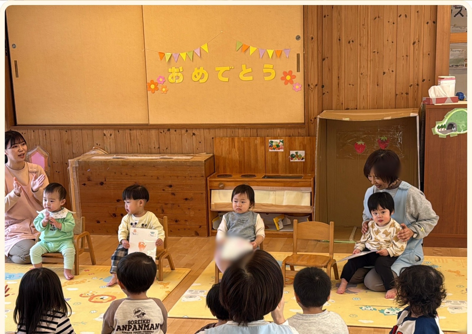 2月19日(木)誕生会がありました★誕生児は舞台に上がると嬉しそうに手を振ったりインタビューでは恥ずかしそうにしながらも好きな食べ物などを答えていました。子ども達からは歌や手遊びのプレゼントがありました。保育者からはマジックのプレゼントがありました。 保育園の様子はこちら(インスタグラム)でご覧ください。