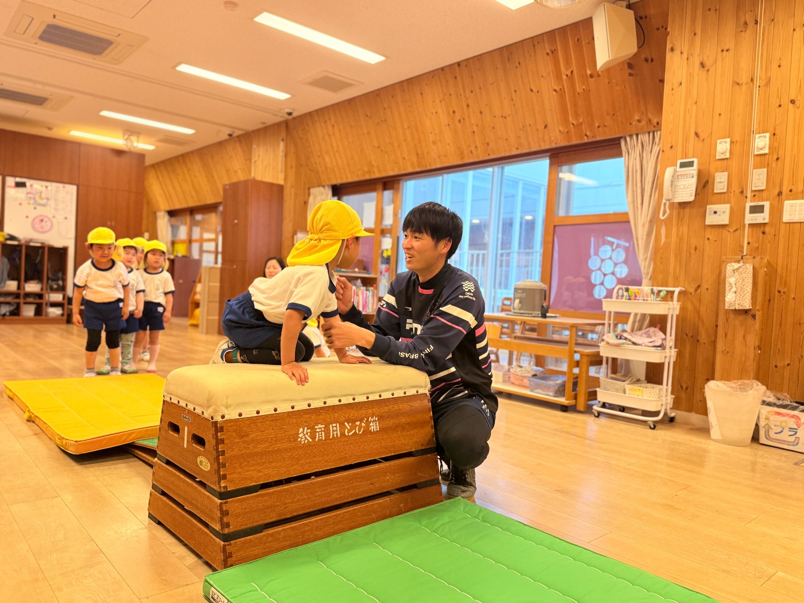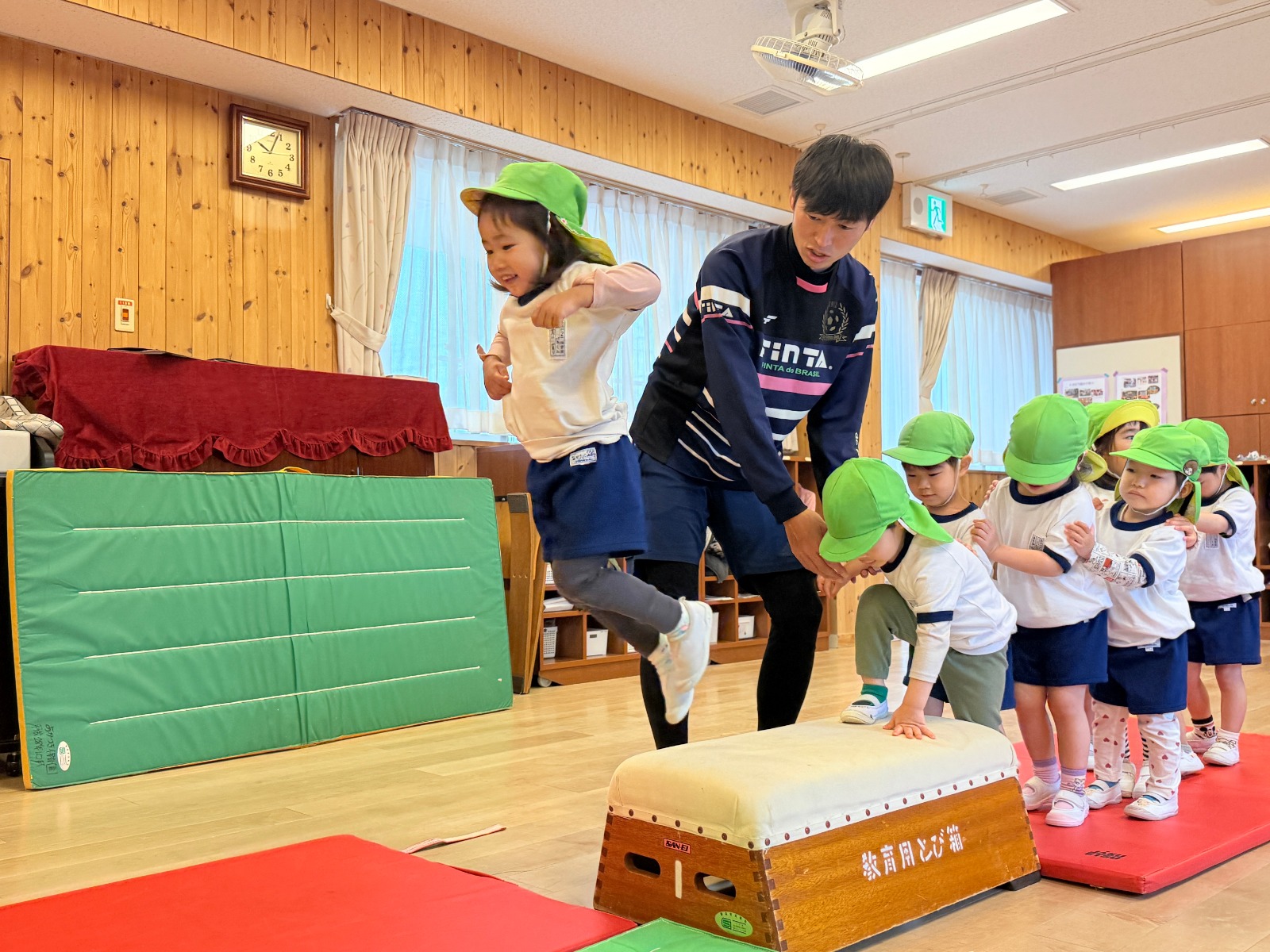 4月10日(金)今年度に入って初めての体育指導がありました。3歳児は初めての体育指導ということもあり体操服を嬉しそうに見せてくれていました♪マット運動をしたり、跳び箱をしたり、楽しみながら全身を使っていました★ 保育園の様子はこちら(インスタグラム)でご覧ください。