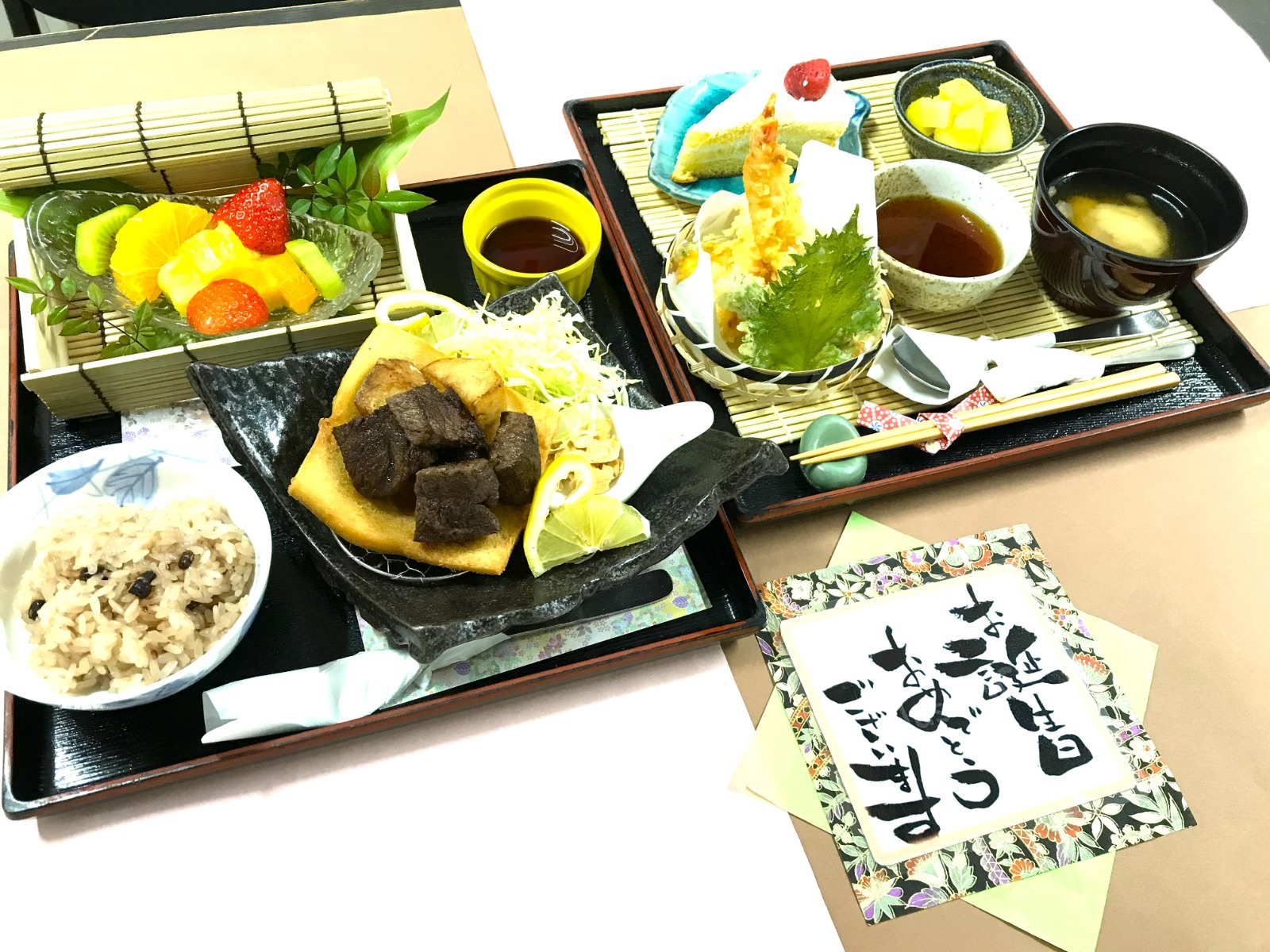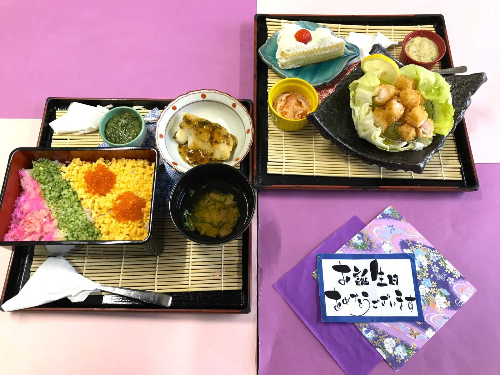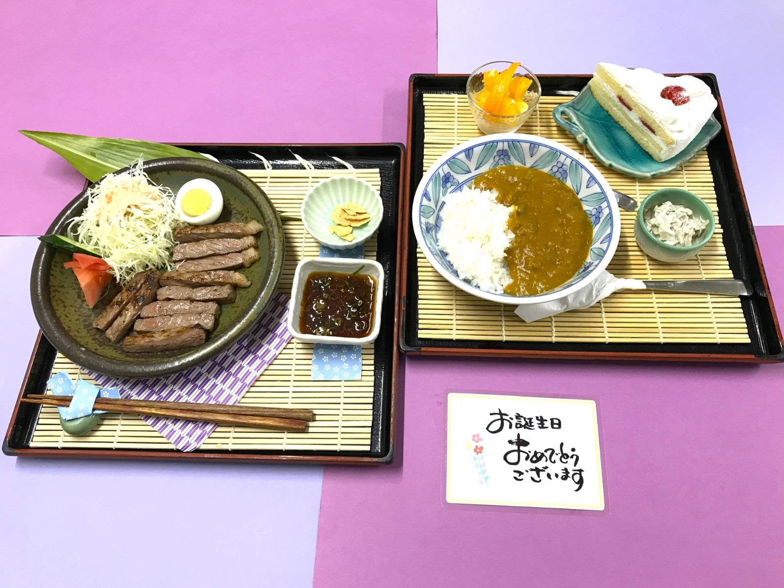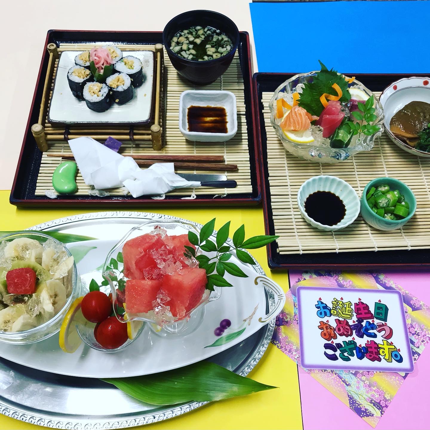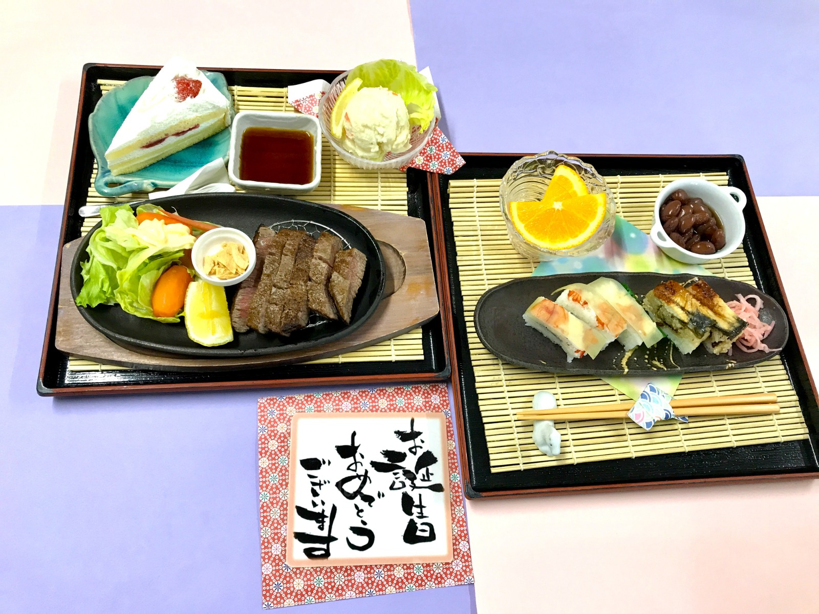 入所者様のお誕生日に、お祝い膳としてご希望のメニューを召し上がって頂いています🎁握り寿司🍣、ステーキ🥩が人気メニューで、皆様楽しみにされています✨