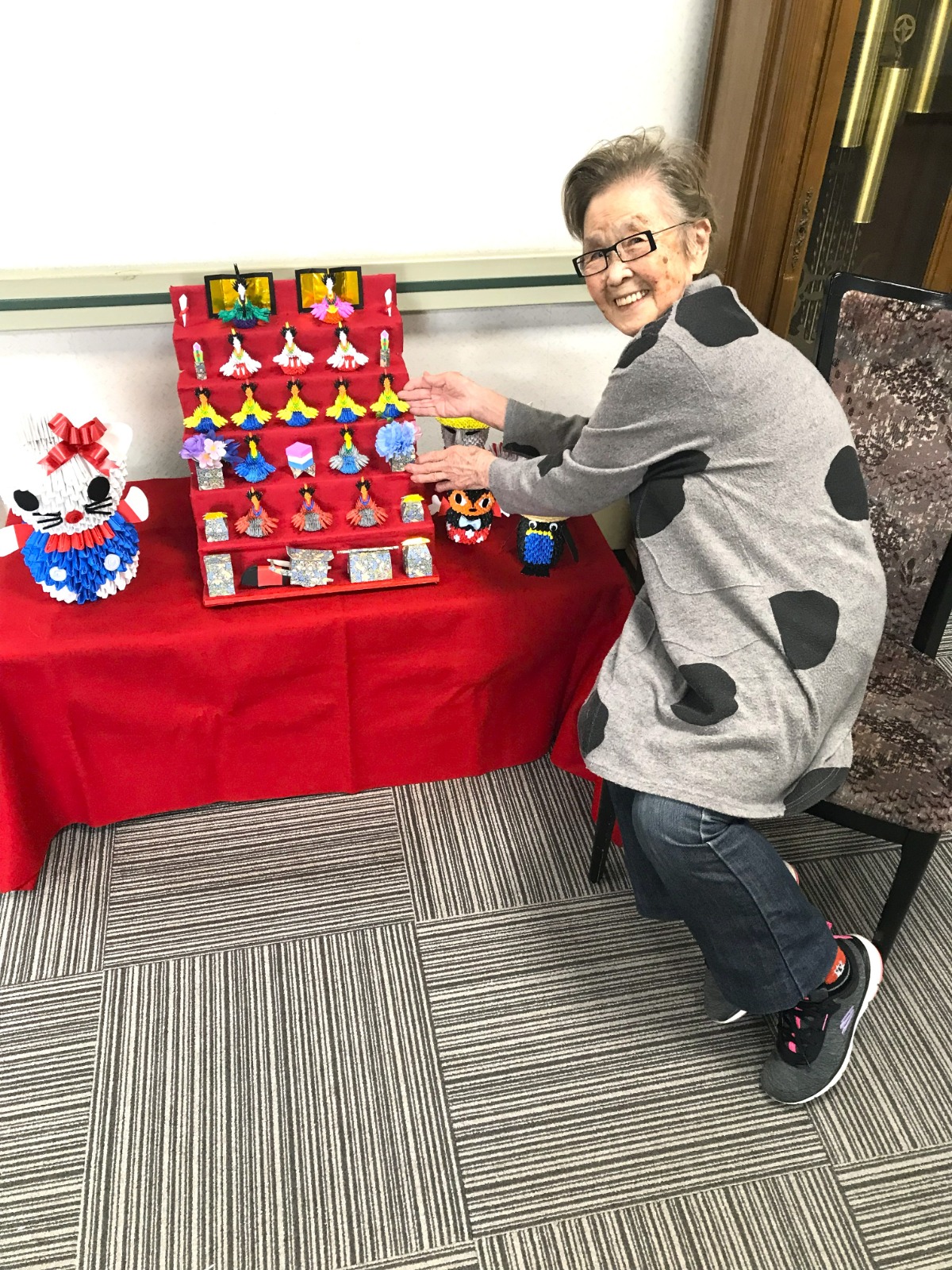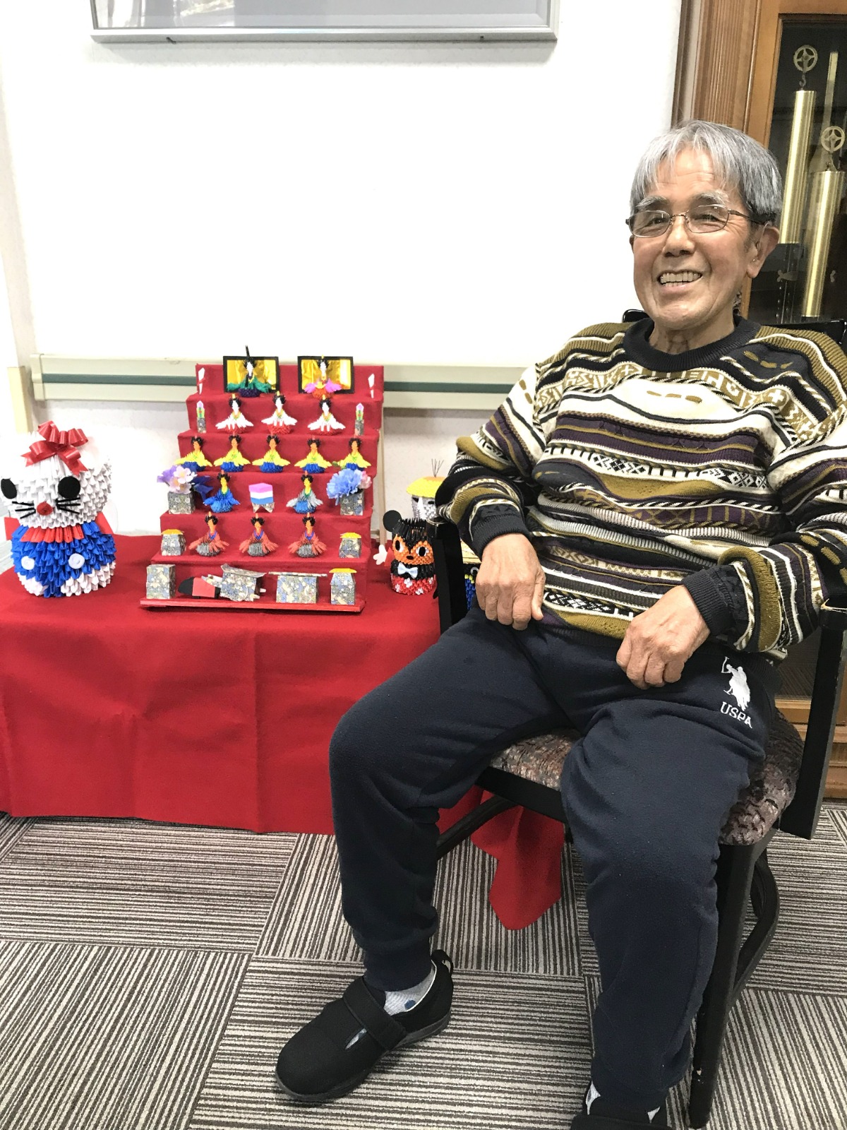 もうすぐひな祭りですね。あけぼの苑ではボランティアの方より手作りひな人形を頂き、飾らせていただきました。ご利用者も手に取って観られたり、写真撮影されたりと、とても喜ばれています!!