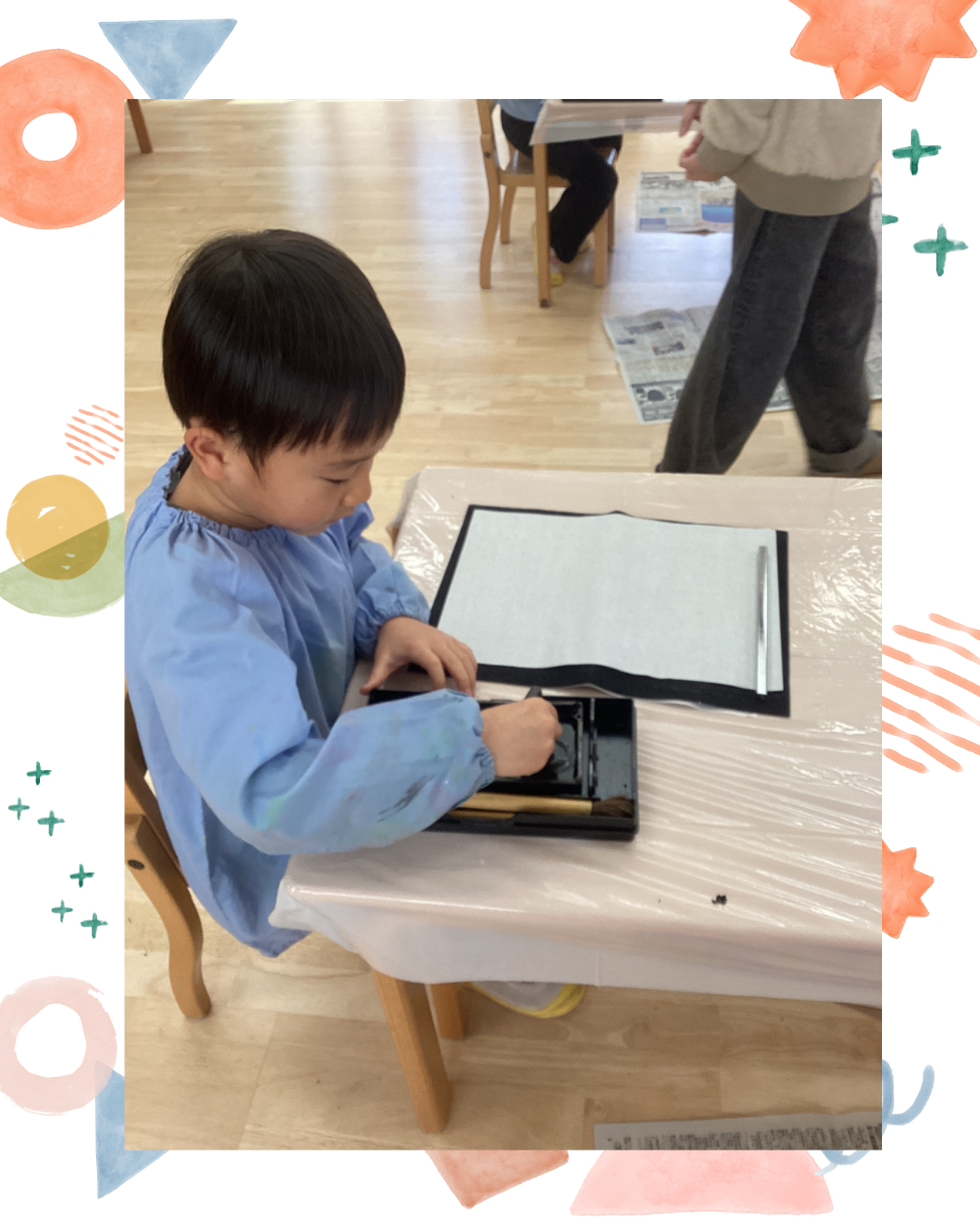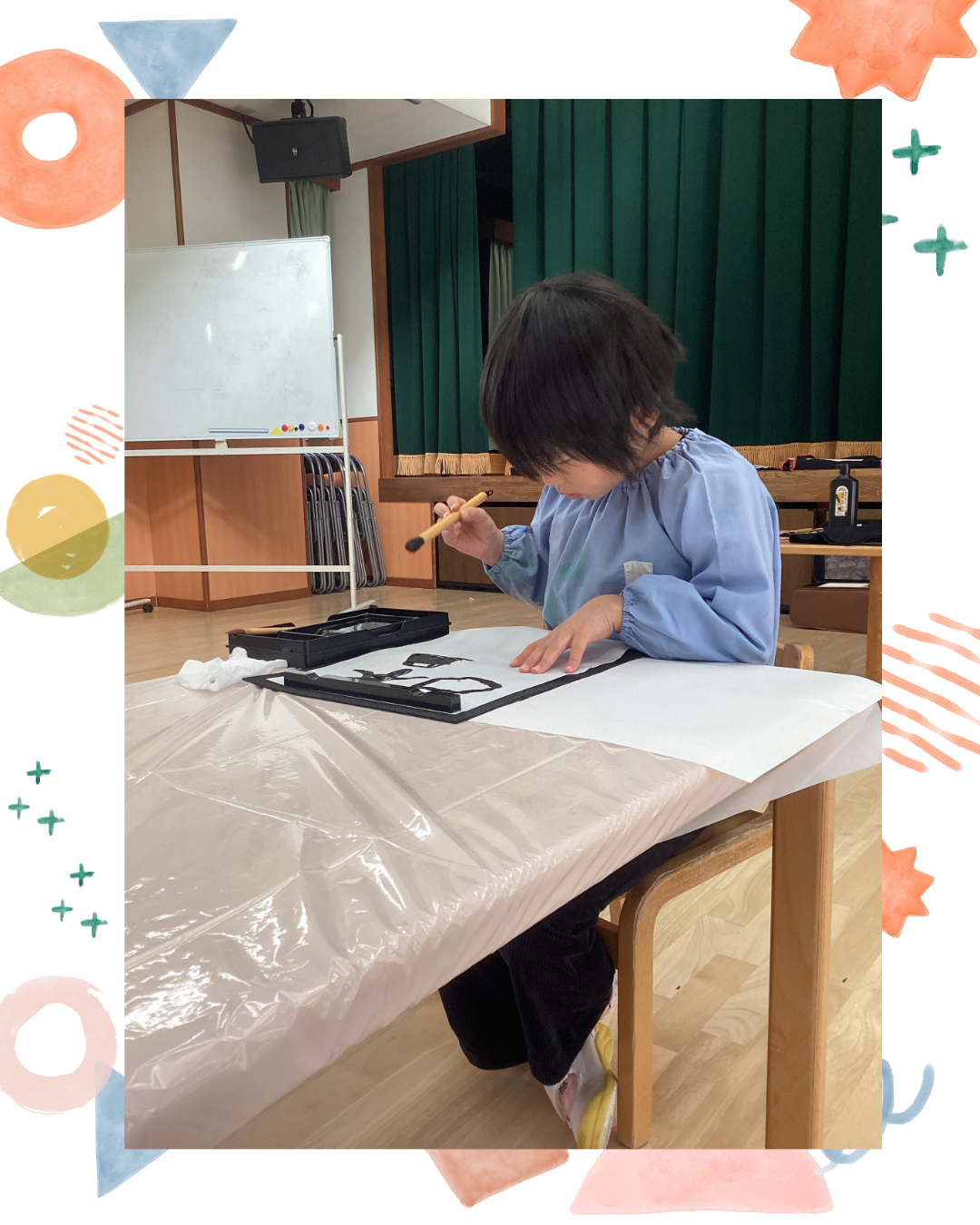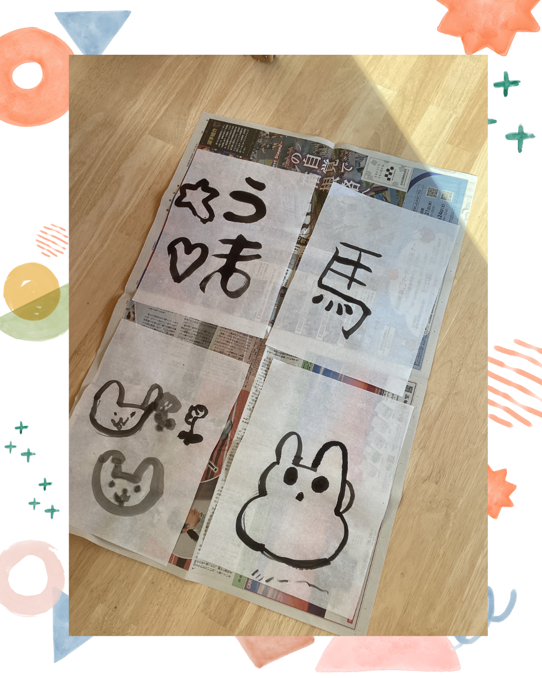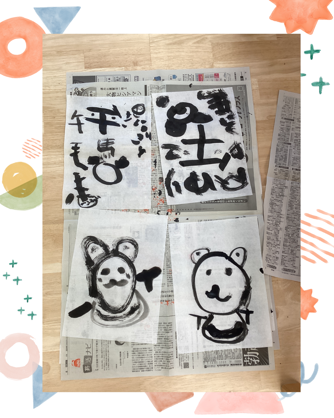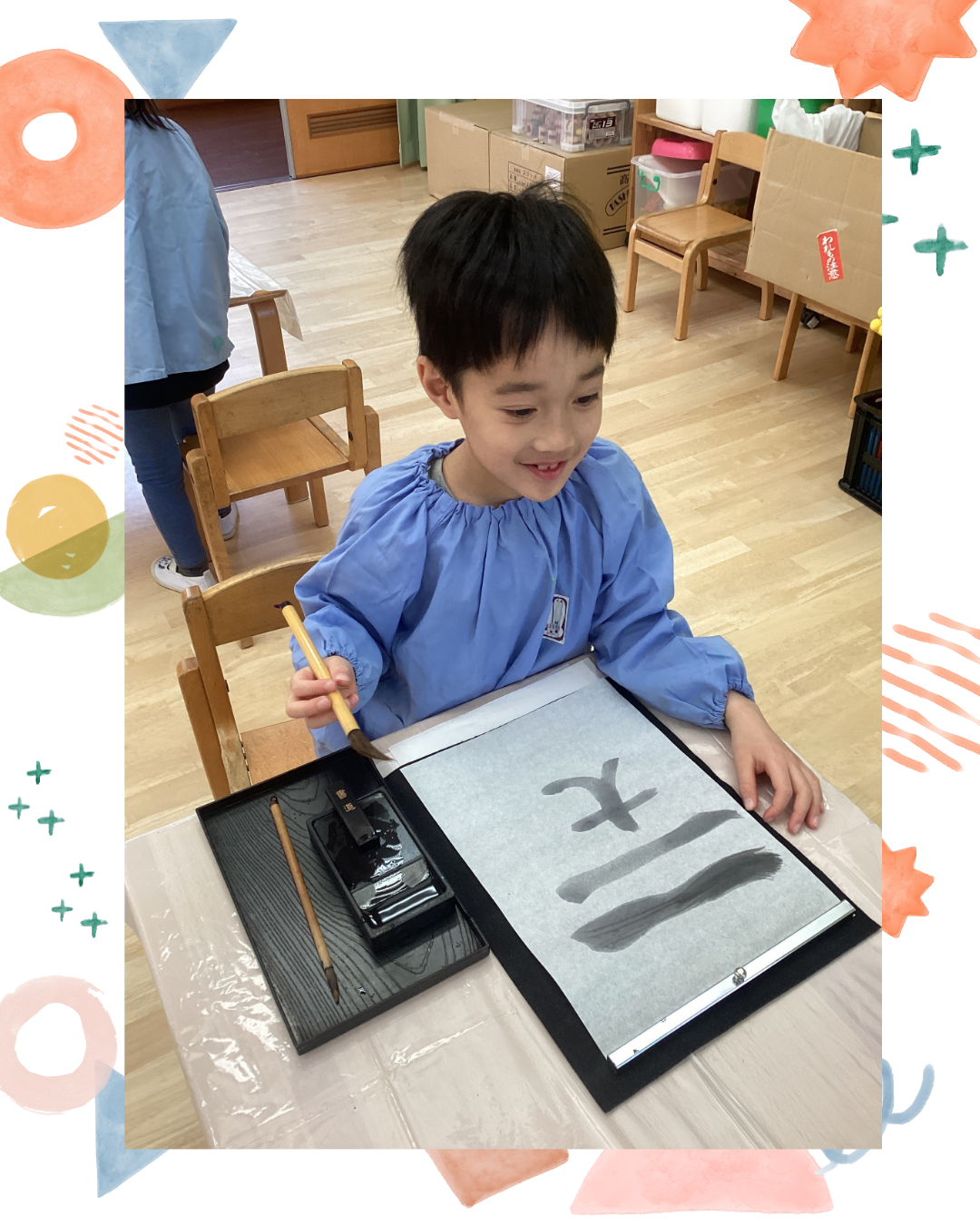 1月7日(水)今日は卒園児と卒園児の保護者の方が来園し、書道体験をしにきてくれました!墨をするところから丁寧に教えてもらい、すったあとに筆を浸して半紙に書くと「うわ~!すごいー!」と驚いていました。好きな模様や文字を書いていくうちに、どんどん筆が走り、「書くことが楽しい!」という声も聞かれましたよ。インスタにも載せていますのでごらんください。インスタグラムはこちらから