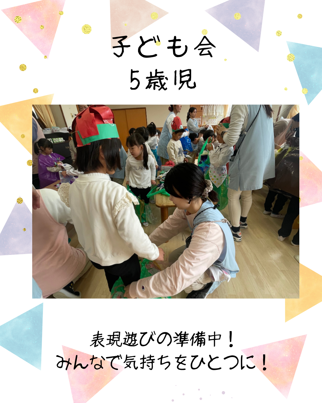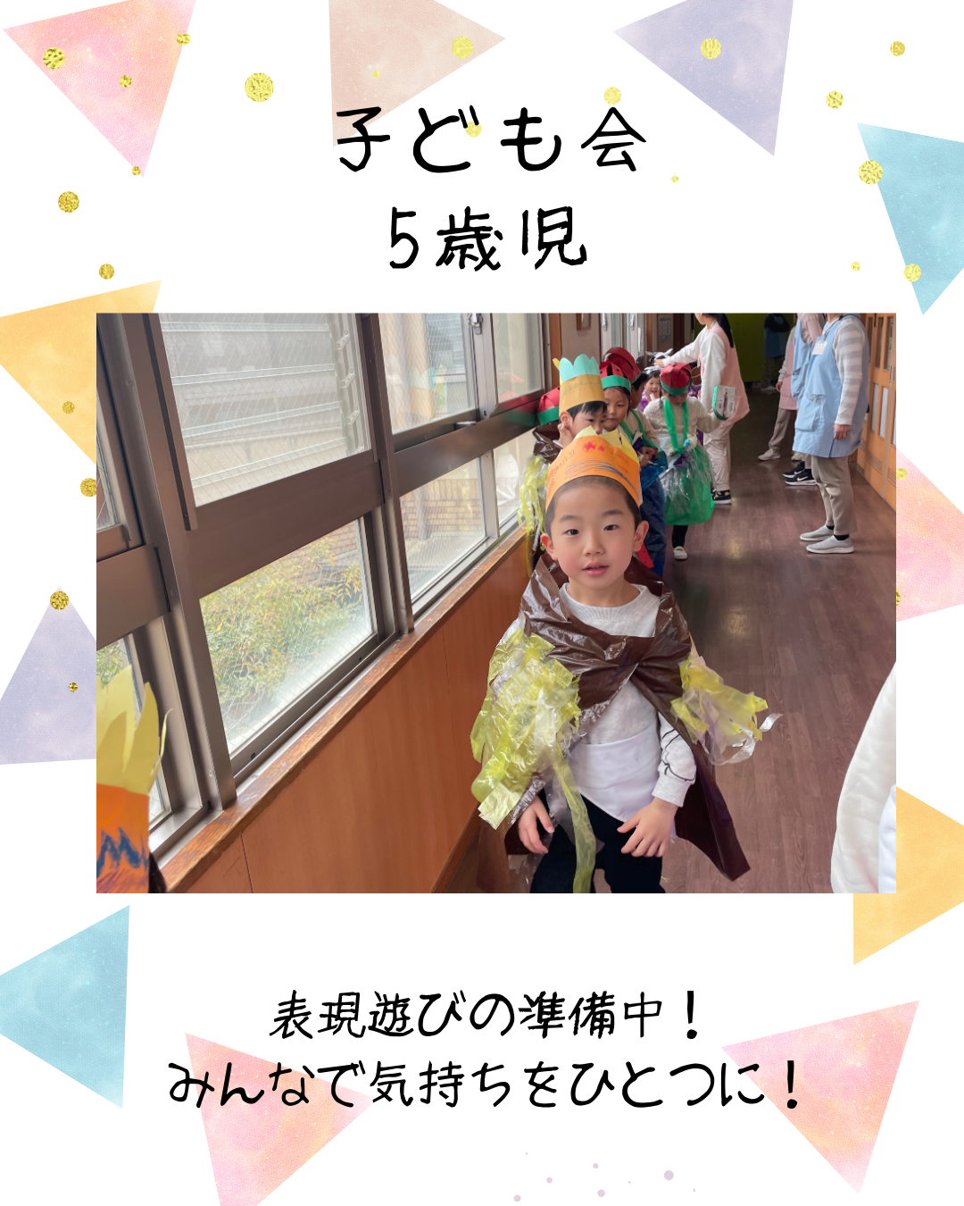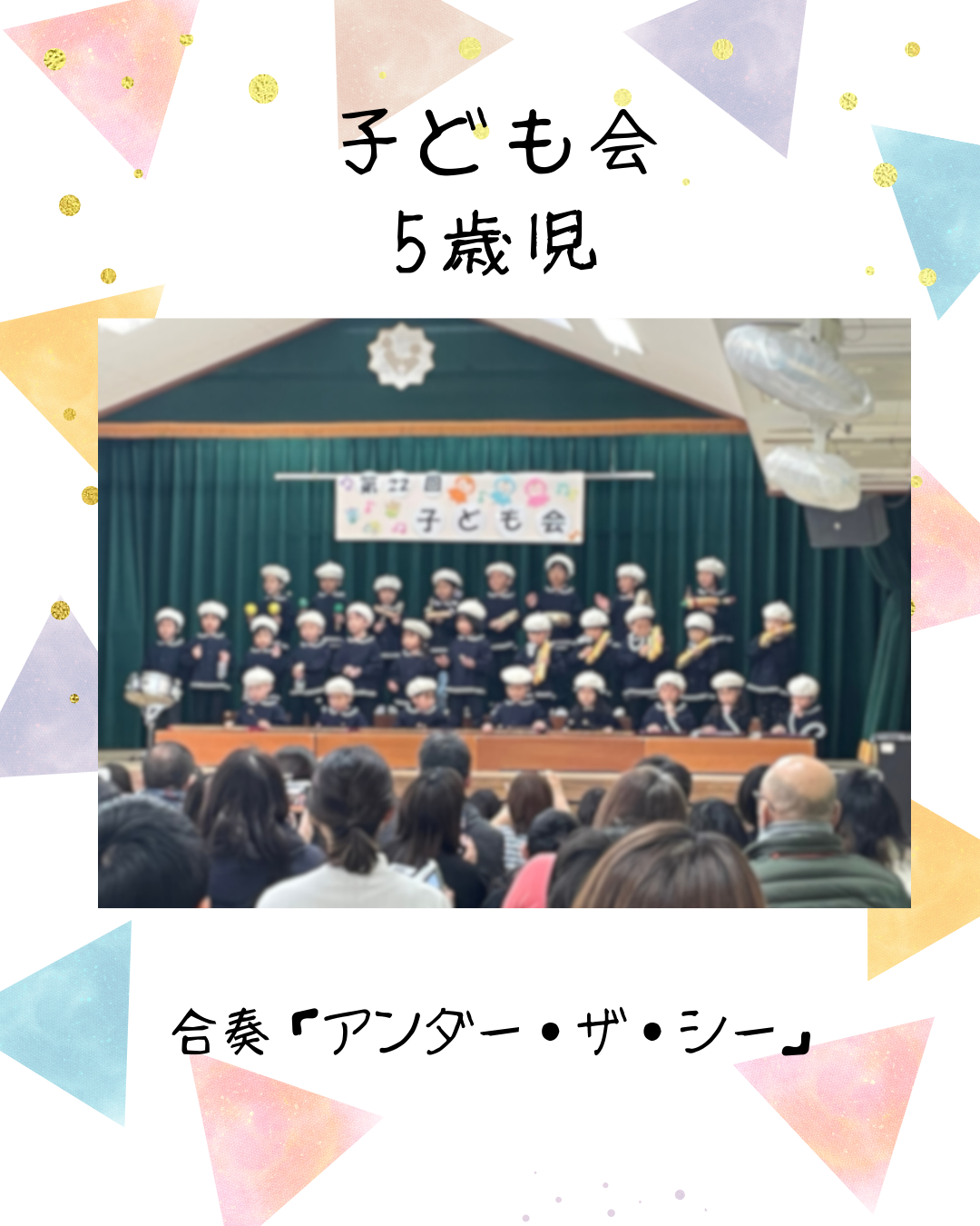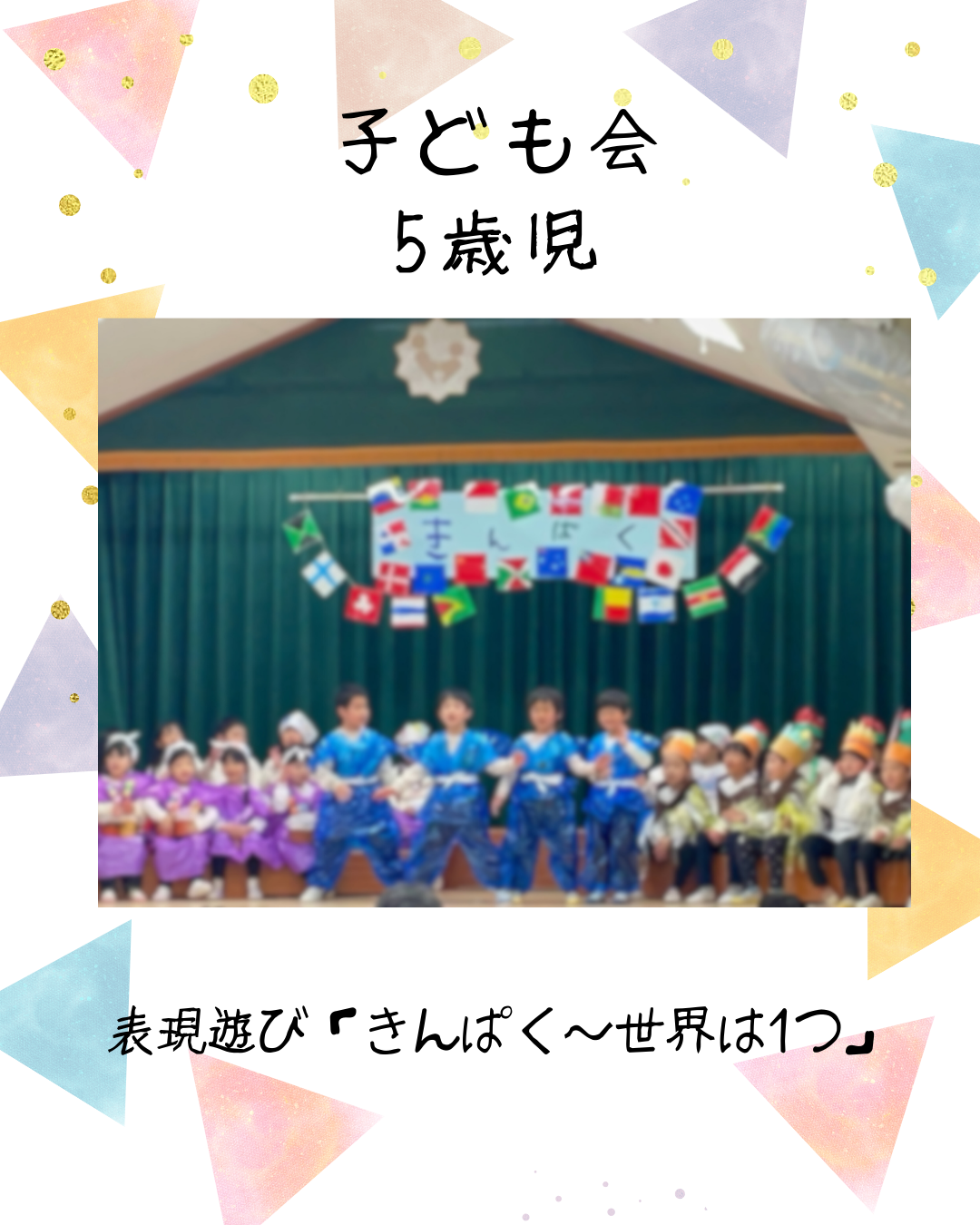 2月7日(土)今日は第22回子ども会がありました!5歳児きりん組は、きりん組の”万博”をテーマに積み重ねてきたことを表現あそびに取り入れました。国を超えて大陸についてみんなで考えたことを、のびのびと楽しむ姿が見られました。合奏は「アンダー・ザ・シー」、合唱は「大丈夫」を歌いました。気持ちを一つに音と歌を届けてくれましたよ。インスタにも載せていますのでごらんください。インスタグラムはこちらから