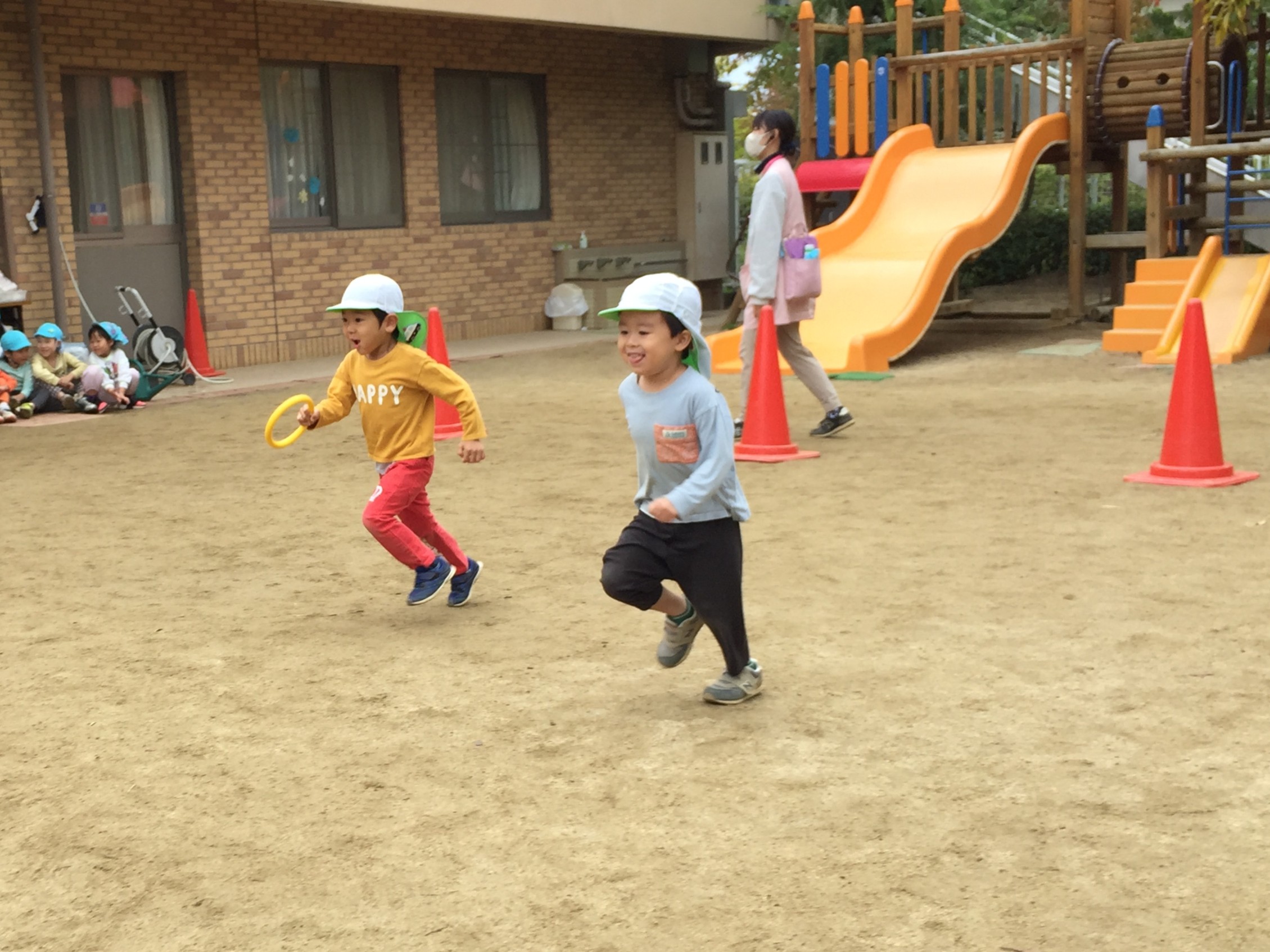 11月6日(木)3歳児~5歳児で、ミニ運動会を行いました。異年齢で一緒に玉入れを楽しんだり、バトンリレーを行いました!!「がんばれー」と大きな声で応援をしながら、元気いっぱいに体をうごかしていましたよ!!インスタにも載せていますのでごらんください。インスタグラムはこちらから