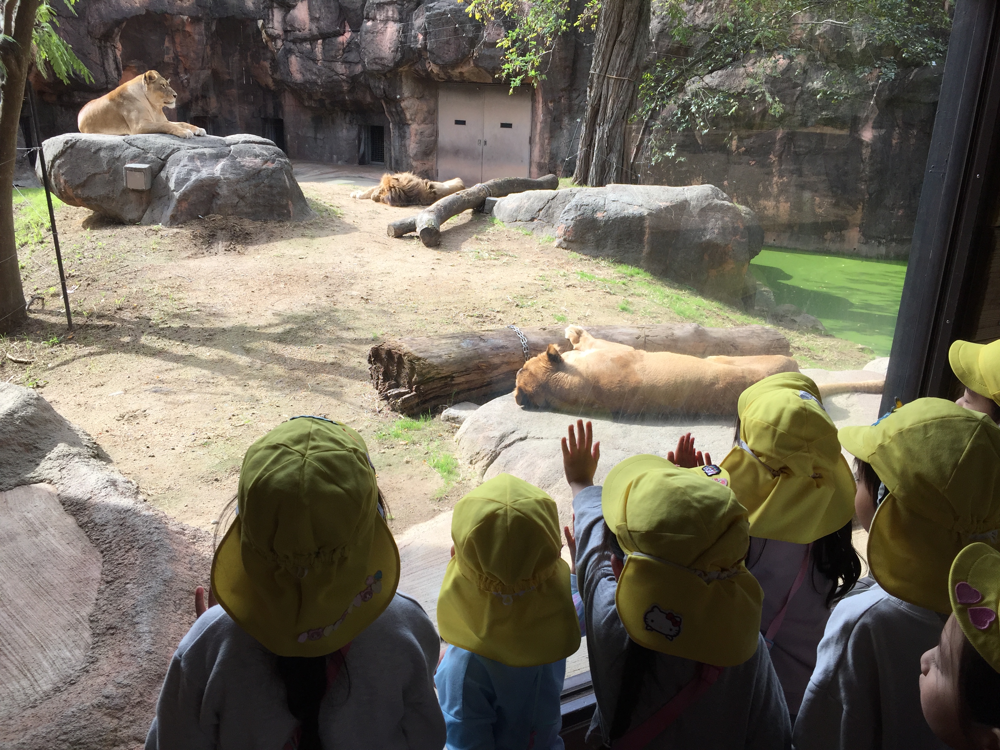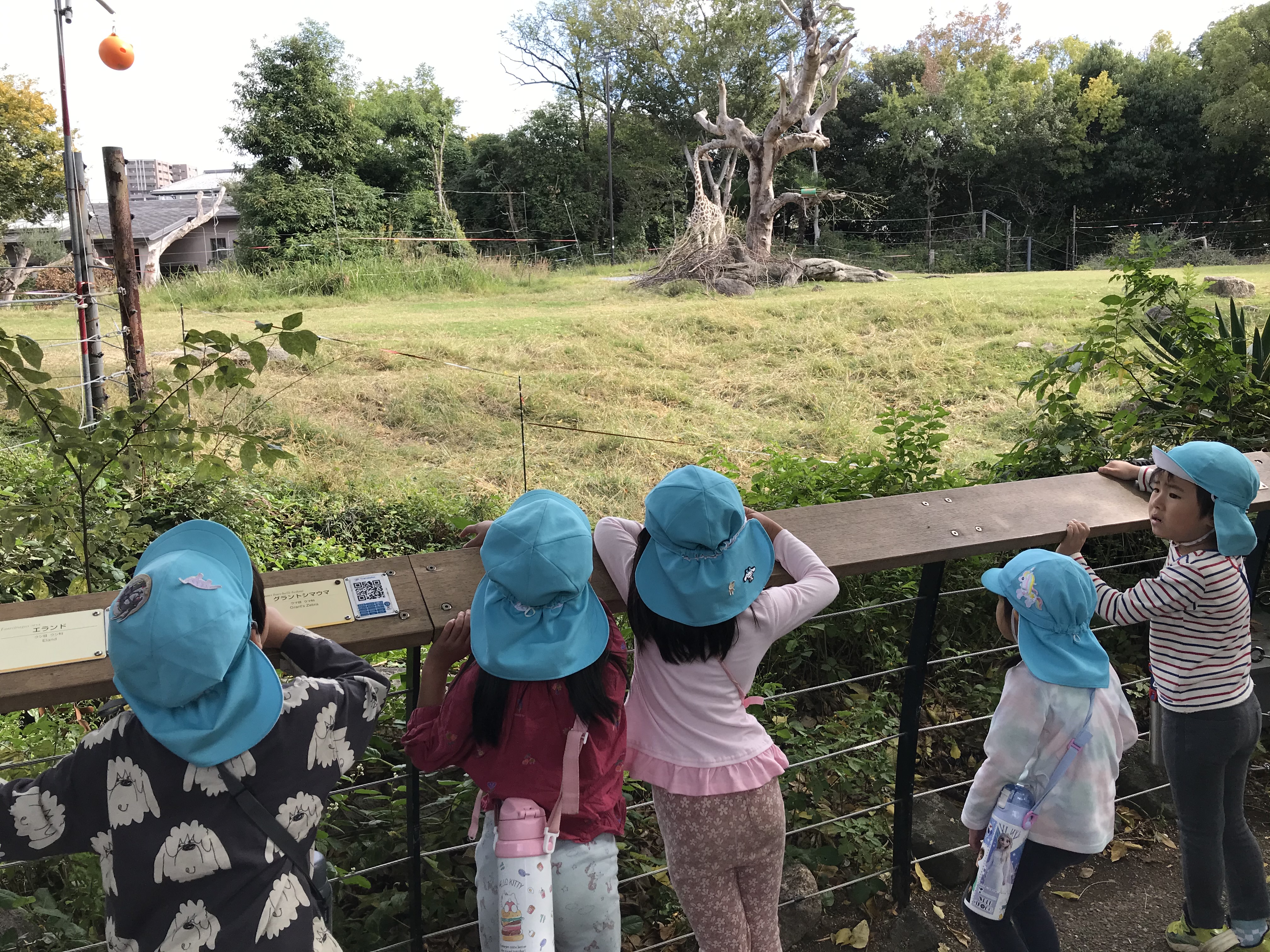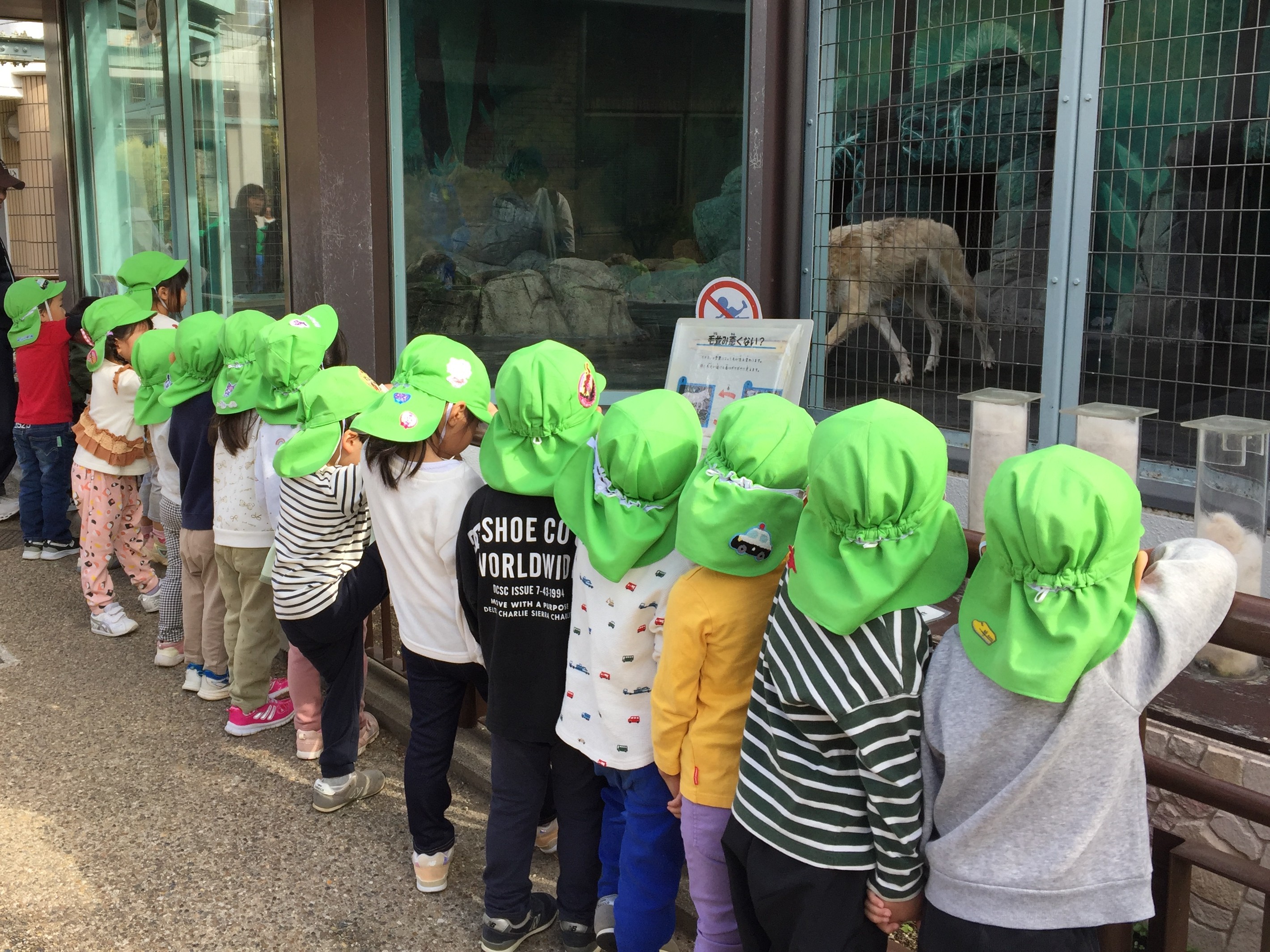 11月12日(水)3,4,5歳児が大型バスに乗って秋の遠足で天王寺動物園にでかけました。動物を見つけると「〇〇だ!!」と指をさし、友達に伝えたりきりん・オオカミ・クマなどの動物をうれしそうに見ていました。動物園でお弁当も食べ、楽しく過ごしました☆インスタにも載せていますのでごらんください。インスタグラムはこちらから