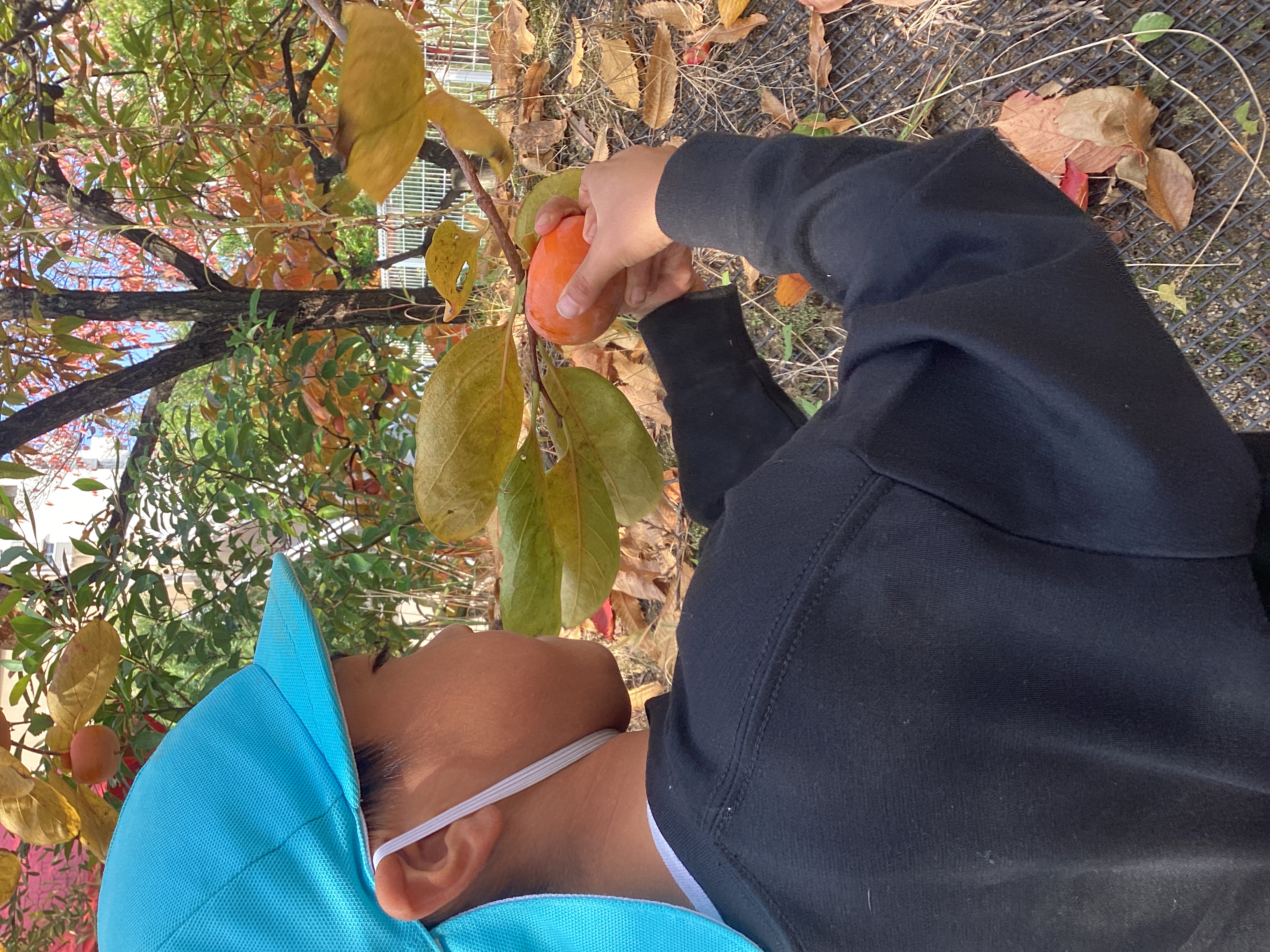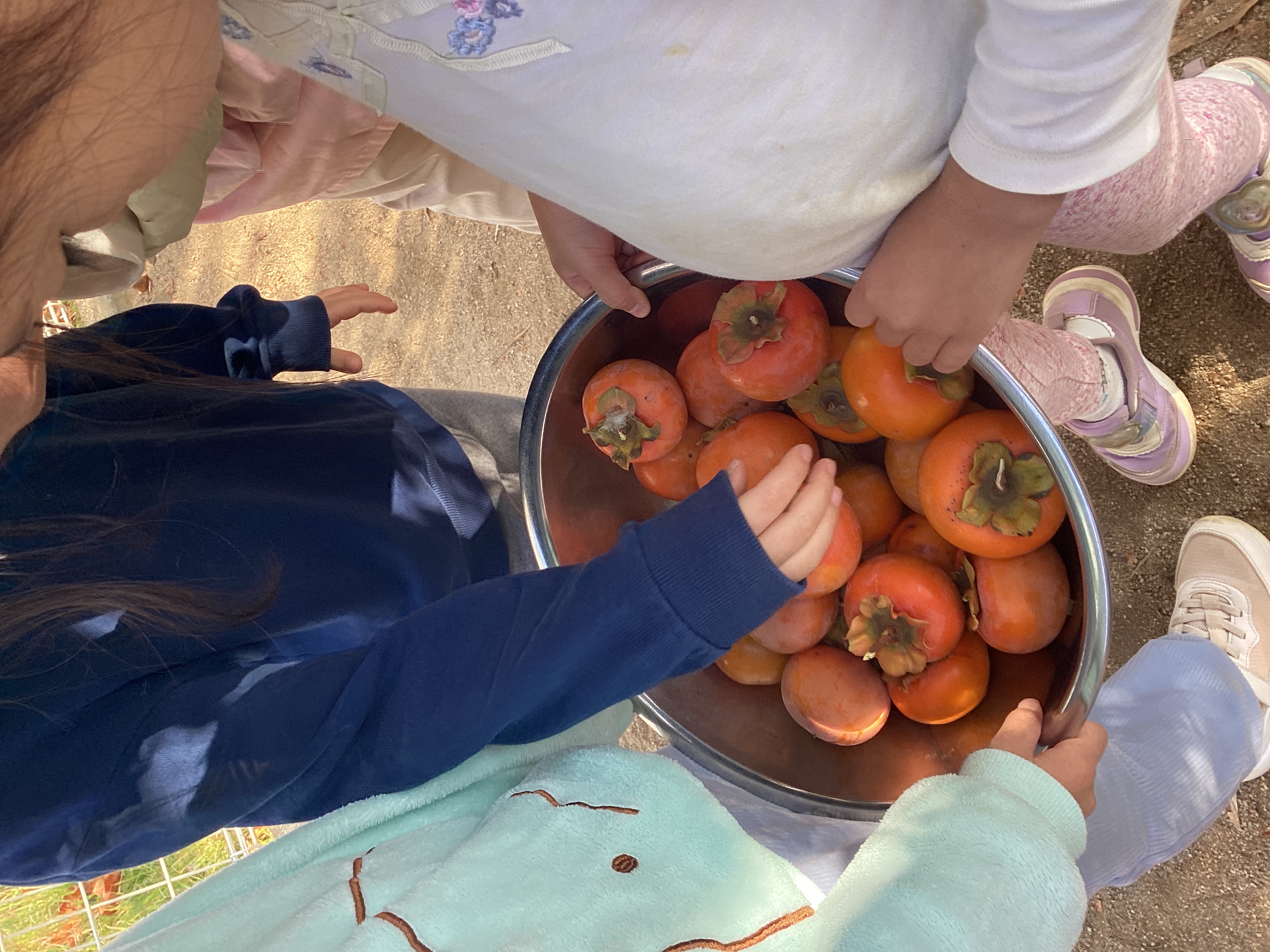 11月21日(金)園庭に実った柿を収穫しました!!脚立に登ったり、つきやまに登ってみたり、腕を思いっきり伸ばしたりしながら柿をもぎとっていましたよ☆とってもたくさんの柿が収穫でき、子どもたちと一緒に食べました!!インスタにも載せていますのでごらんください。インスタグラムはこちらから