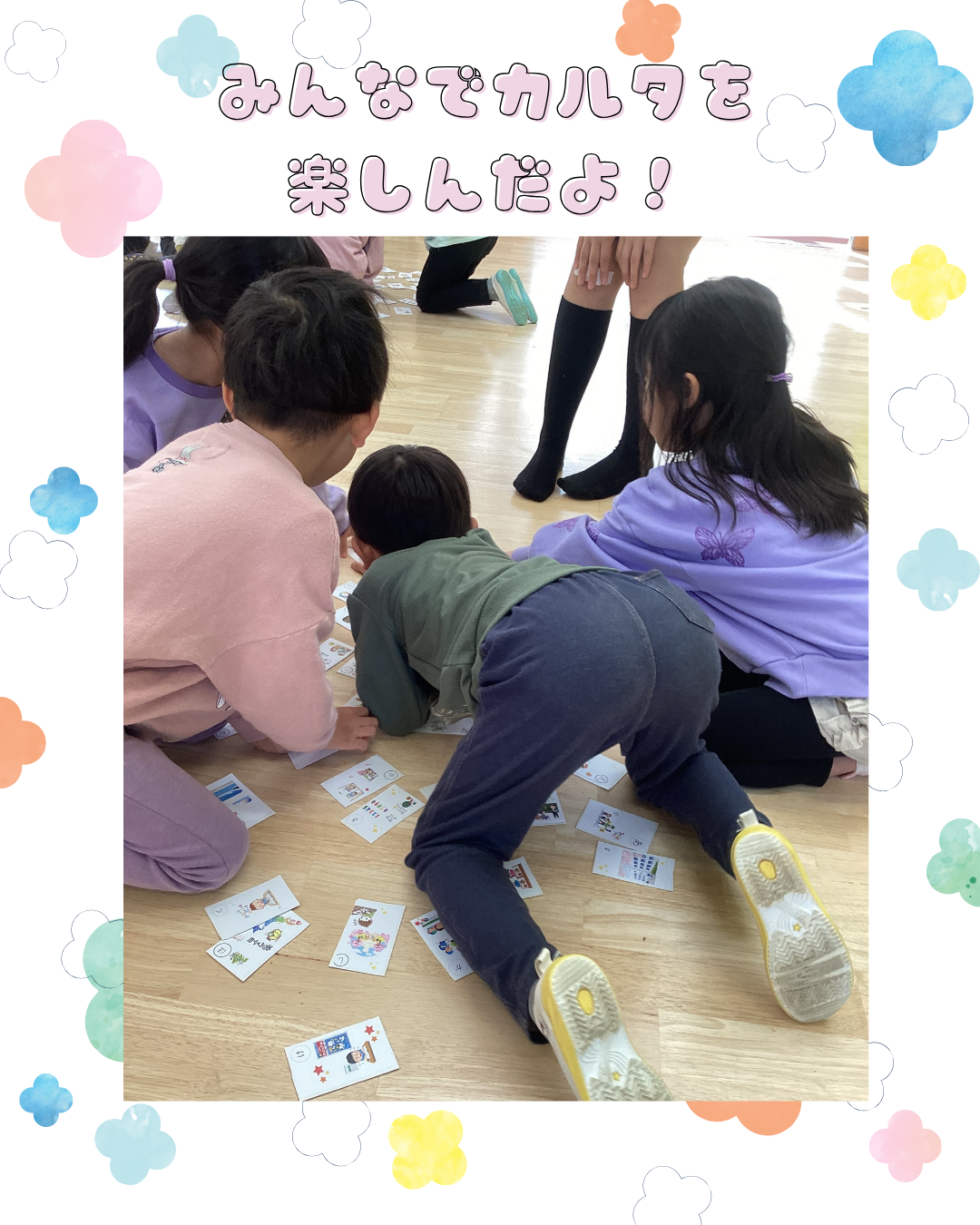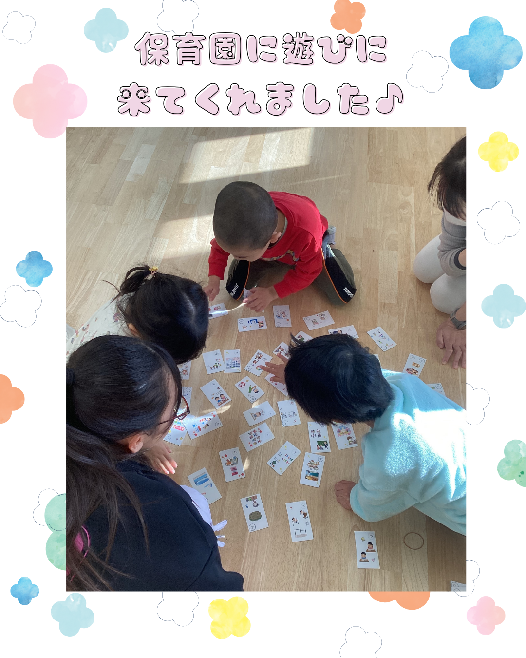 11月27日(木)東三国丘小学校の6年生と5歳児きりん組との交流会がありました。保育園に来てくれ、クラスのみんなに向けて、小学校の紹介をしてくれました。また、手作りカルタを用意してくれており、みんなでカルタ遊びも楽しみました!インスタにも載せていますのでごらんください。インスタグラムはこちらから