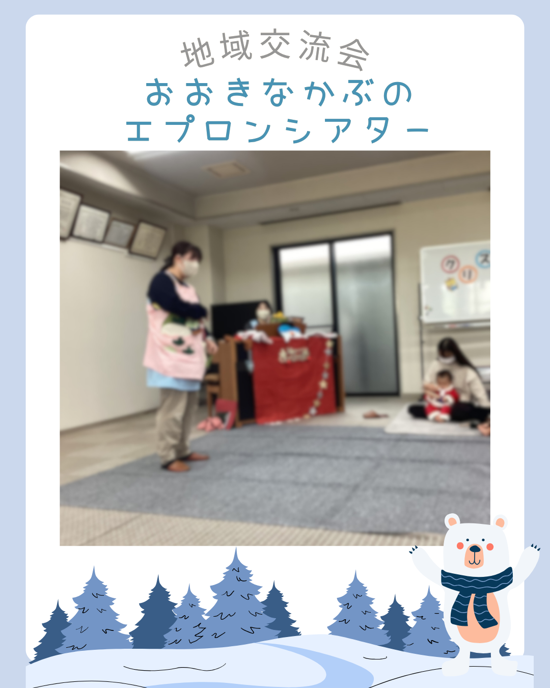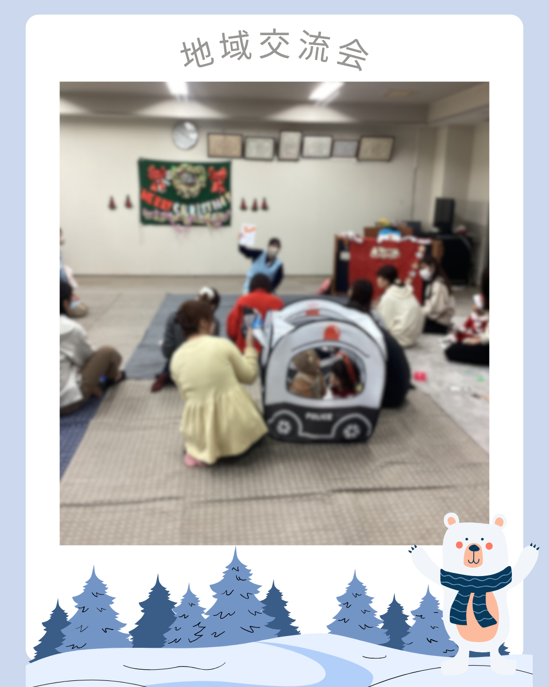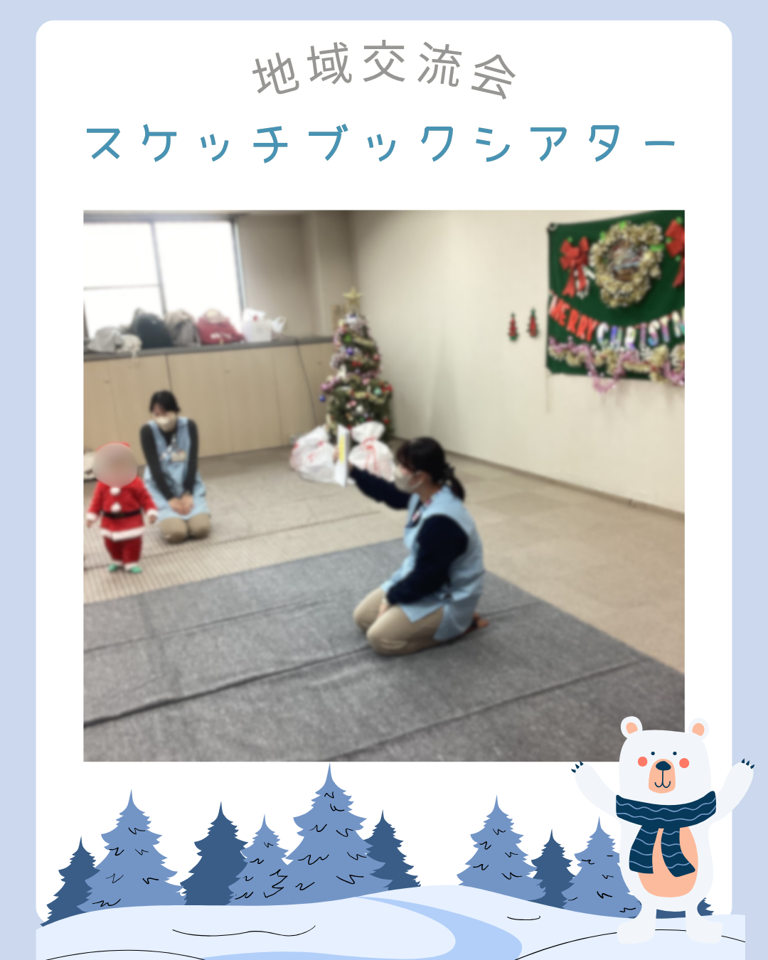 12月10日(水)今日は地域交流で”あつまれ元気”に参加させてもらいました!地域の子ども達にむけて、スケッチブックシアターやエプロンシアターを紹介し、クリスマスソングも歌いました♪インスタにも載せていますのでごらんください。インスタグラムはこちらから