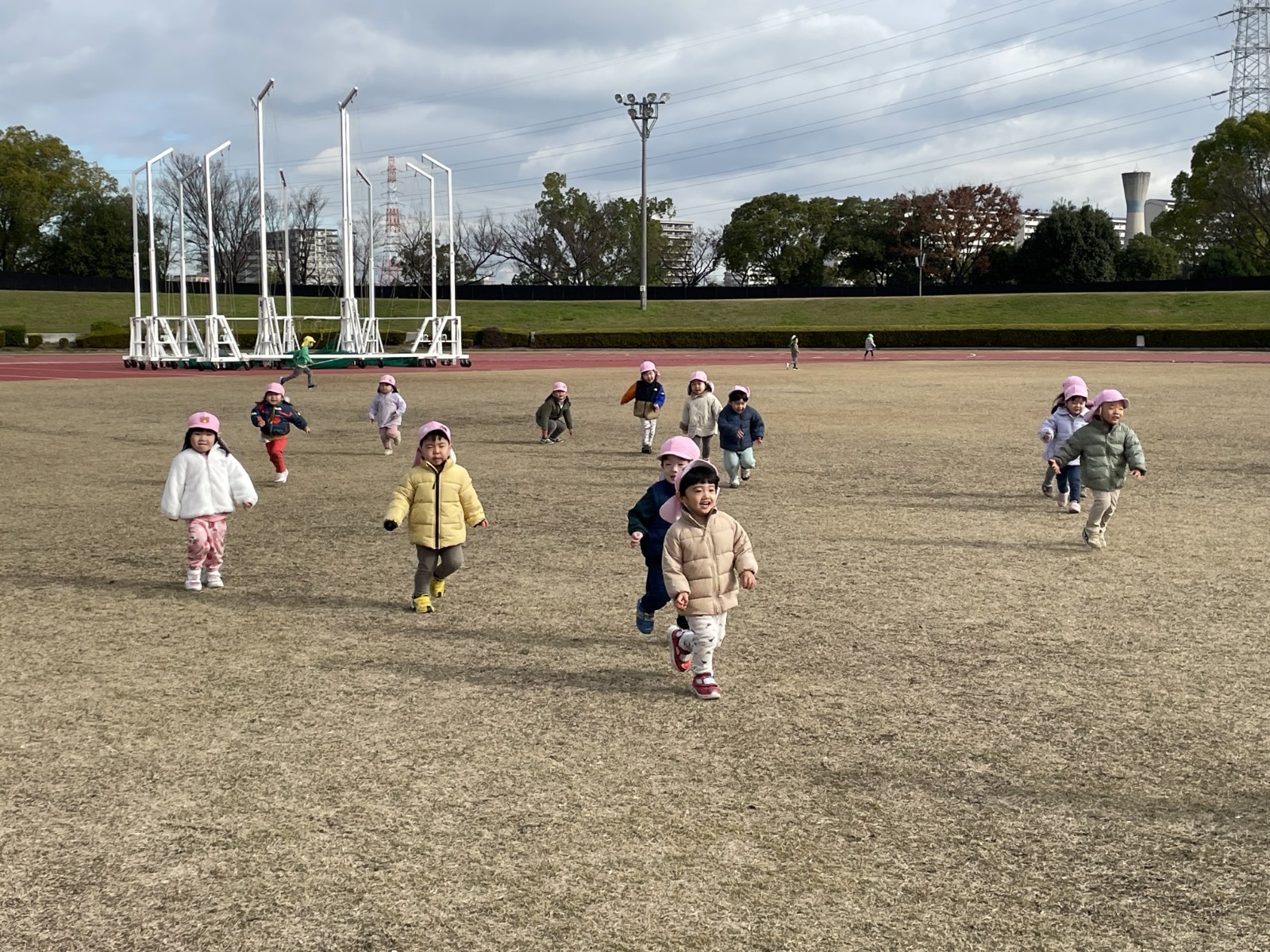 12月15日(月)金岡公園の競技場をお借りして、1歳児~5歳児クラスの子どもたちが遊びました!!マラソン・サッカーや鬼ごっこ・リレー・縄跳びなど好きな遊びを選び、友達や保育者と一緒に存分に体を動かしていましたよ☆インスタにも載せていますのでごらんください。インスタグラムはこちらから
