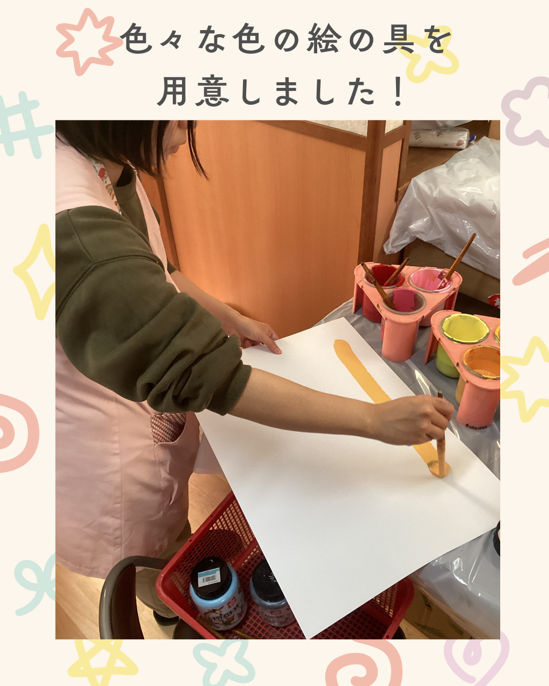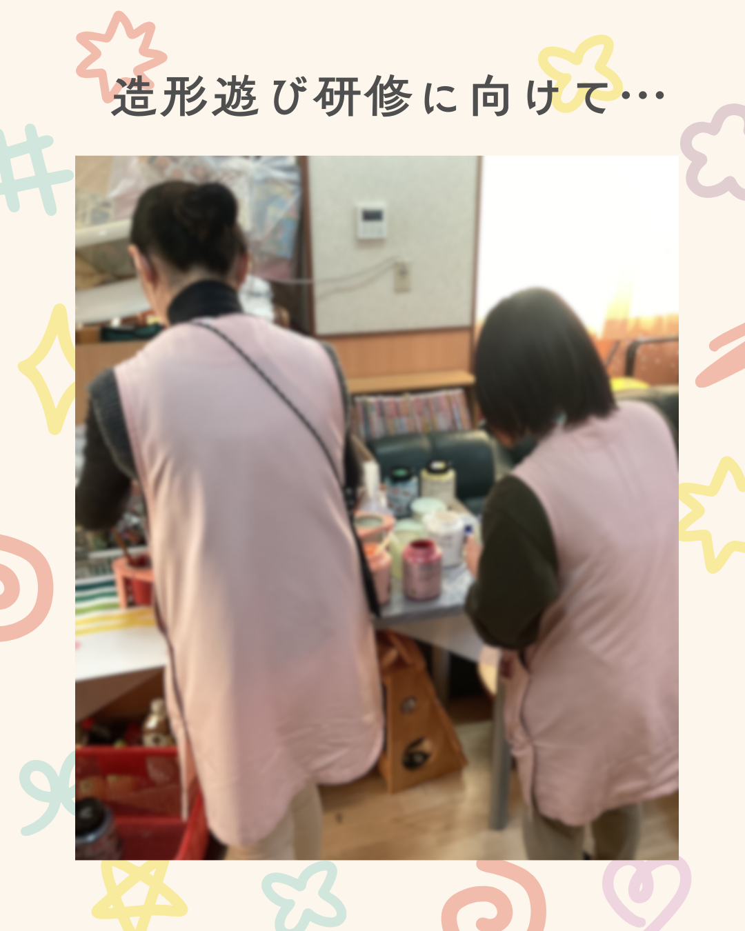 12月16日(火)造形遊びの園内研修を行うにあたって、準備を進めています!絵の具で描く楽しさを職員みんなで味わいたいです。インスタにも載せていますのでごらんください。インスタグラムはこちらから