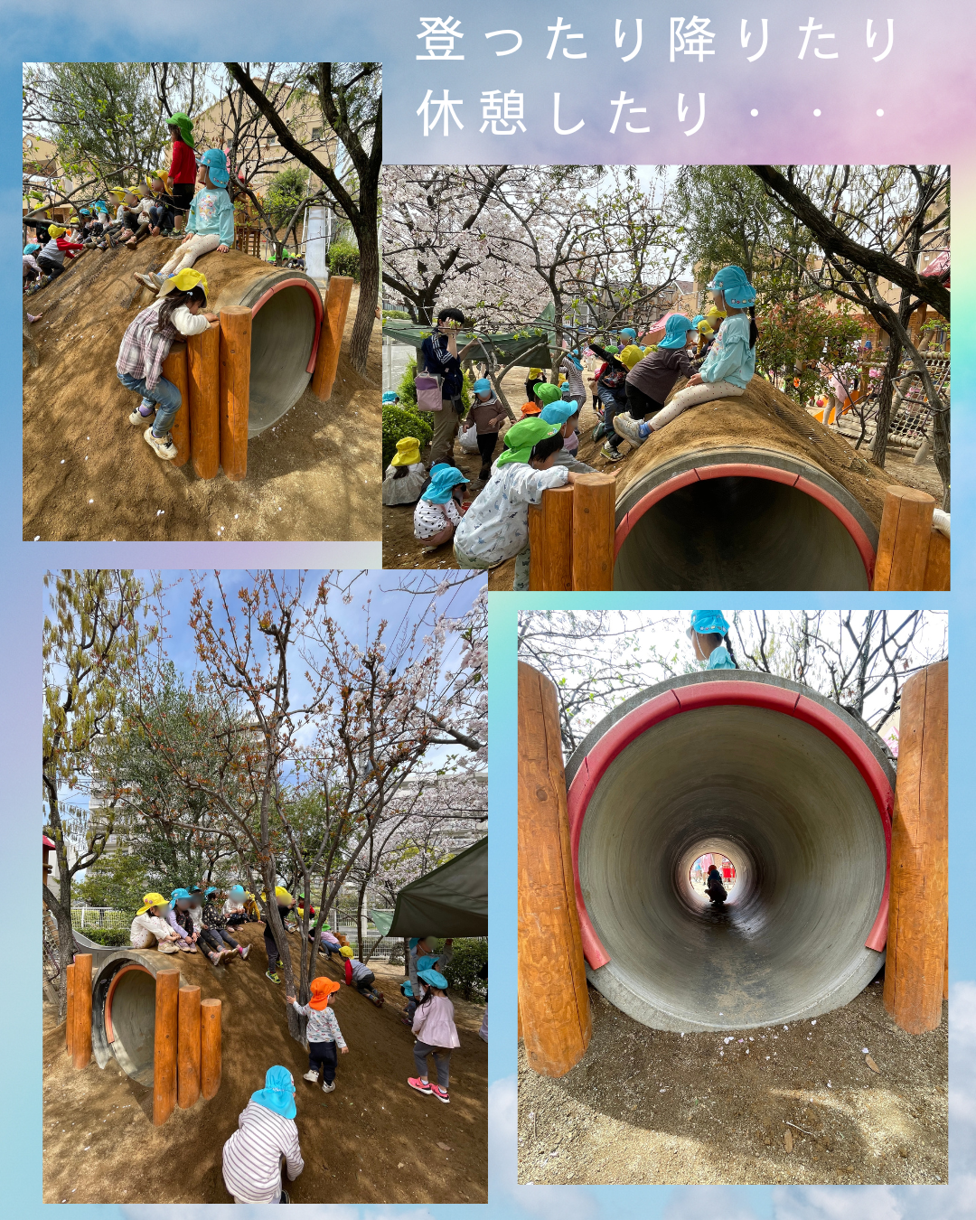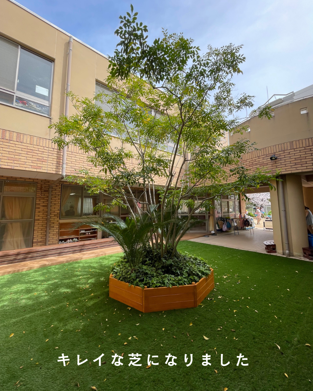 4月7日(火)園庭の築山&中庭の工事が終わり、リニューアルしました!築山では上によじ登って遊べるようになり、みんな登ったり…降りたり…しながら楽しんでいます。また、中庭には芝生が敷かれたことで”ふかふか”の芝に寝転がったり…靴を脱いで歩いてみたり…しながら過ごす姿も見られます。工事期間中、ご協力いただきありがとうございました。 インスタにも載せていますのでごらんください。インスタグラムはこちらから