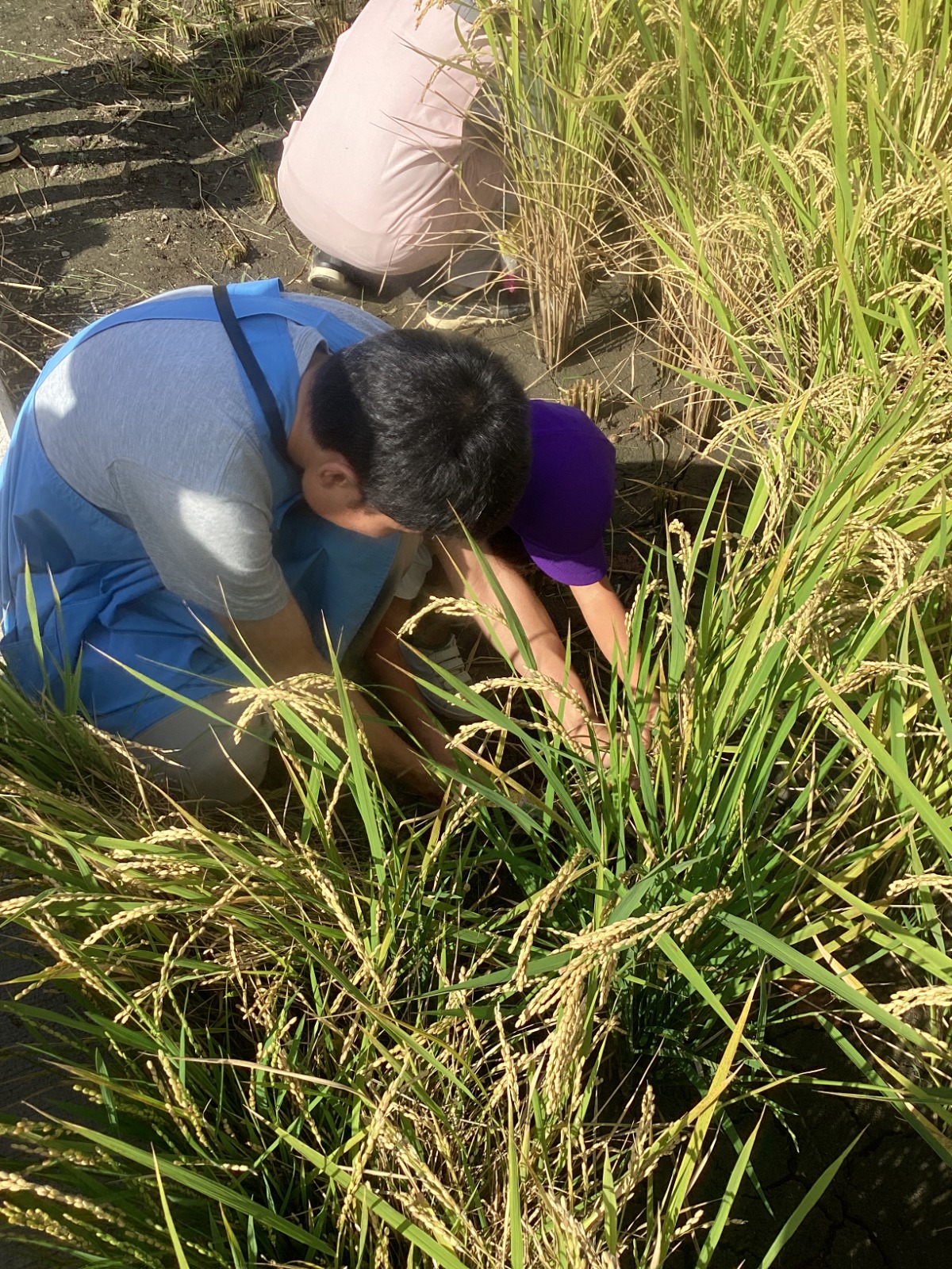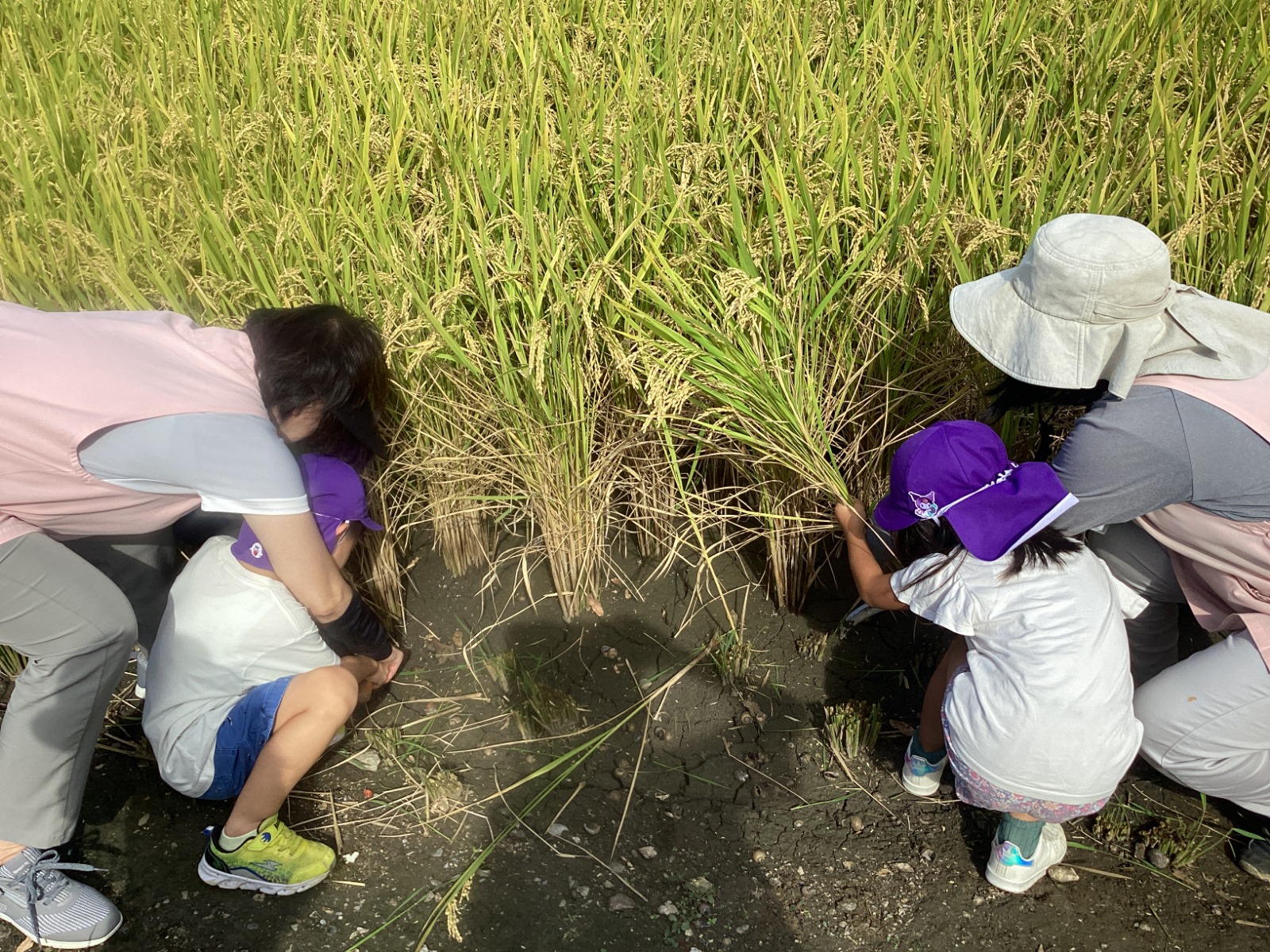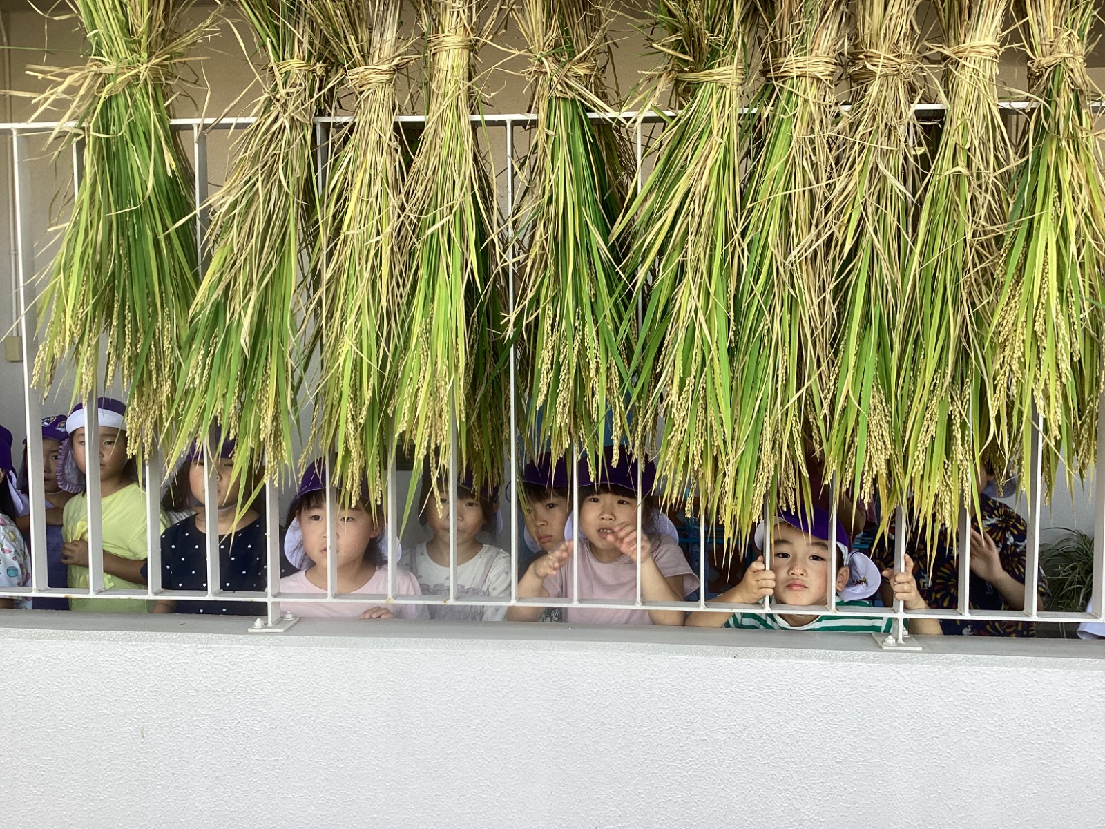 5歳児が稲刈りをしました田植えをした稲が実り収穫の時期を迎えました!近隣の方に稲の刈り方や鎌の使い方を聞き、少し緊張しつつもなかなかうまい鎌さばきであっという間に刈れました!!収穫した稲穂の束を持ってニコニコ笑顔でした☺しばらく乾かして次は脱穀をしたいと思います✨