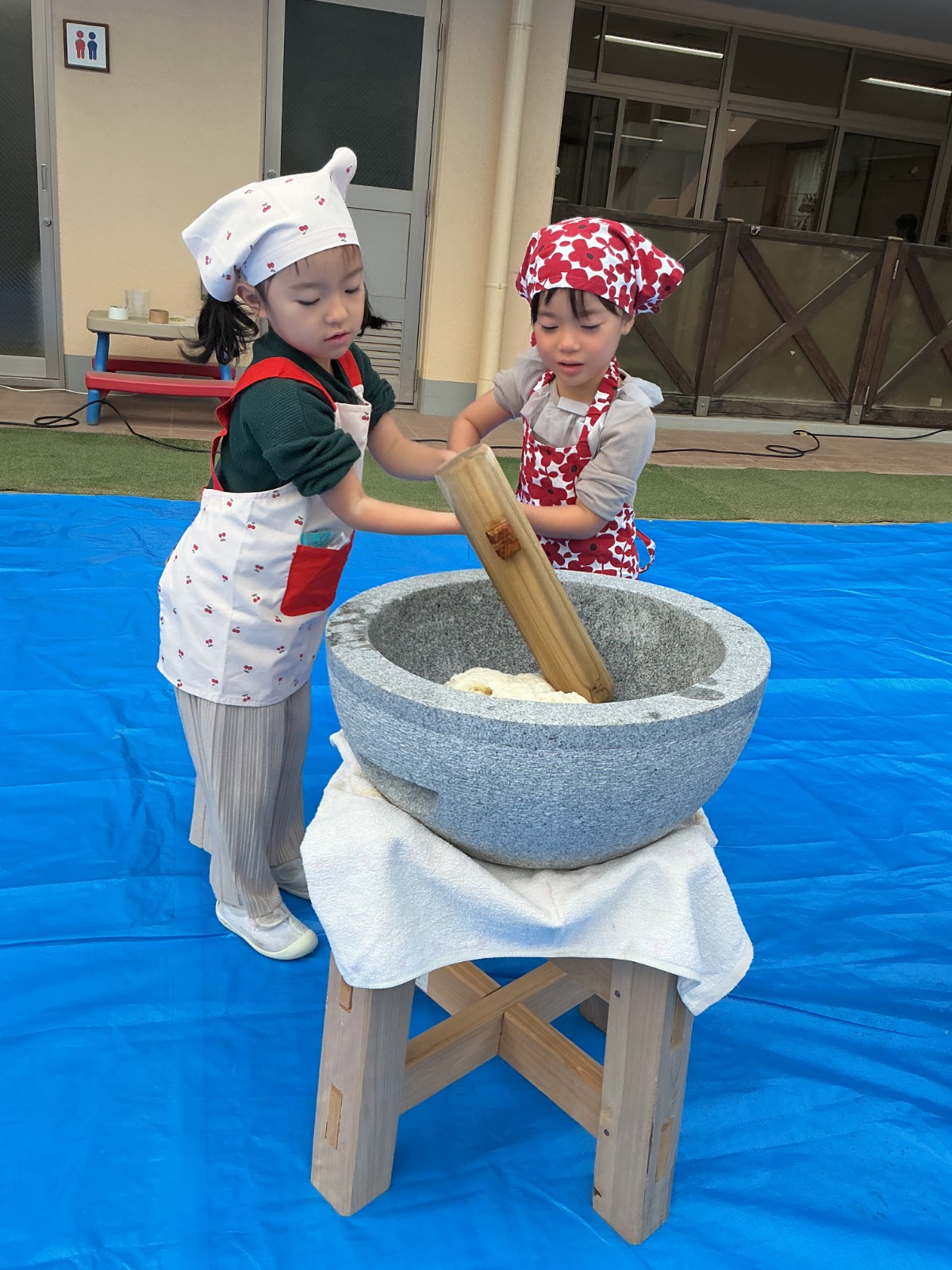 おやつには、出来たてのお餅で作った「あべかわ餅」を