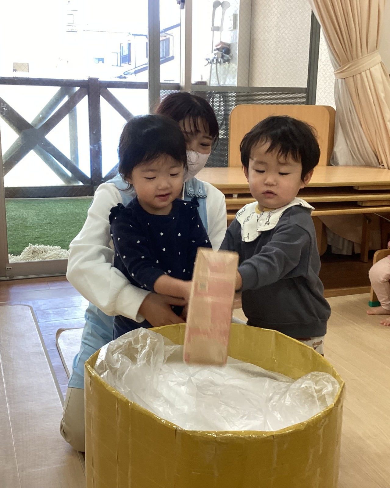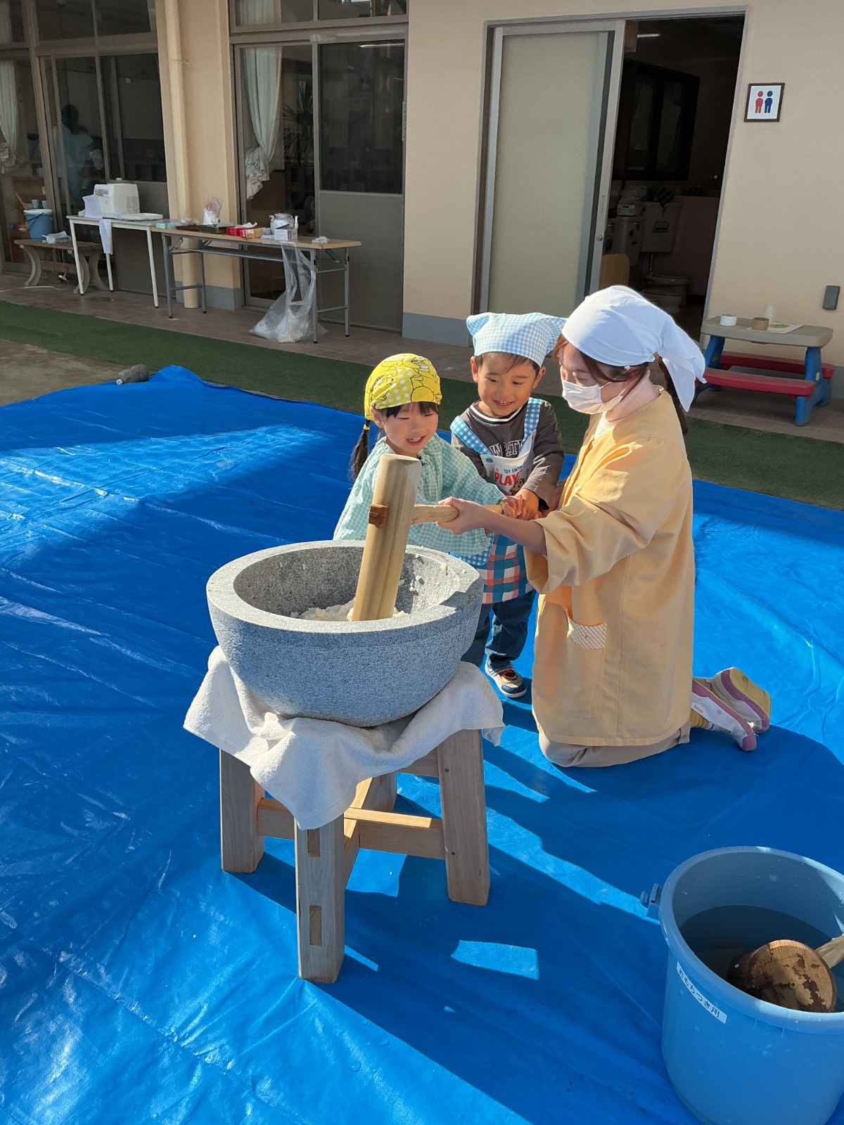 もち米のいい匂いをかぎながら、お米からお餅になる様子を、
