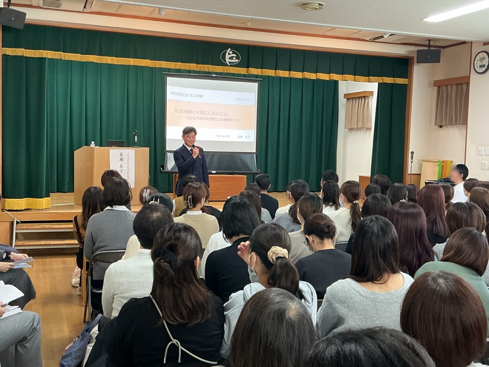 年に1度の法人合同研修会を、今年はきらり保育園で行いました。堺市のあかつき保育園・東三国丘保育園・かなおか保育園と神戸市のきらり保育園・第2きらり保育園の5施設の職員が集まり、交流と研修を行いました。クラス別意見交換会や外部講師をお招きした講演会など、学び深い充実した1日となりました。ホームページやインスタグラムなどで、たくさんの情報を発信していきたいと思います。是非、ご覧ください。