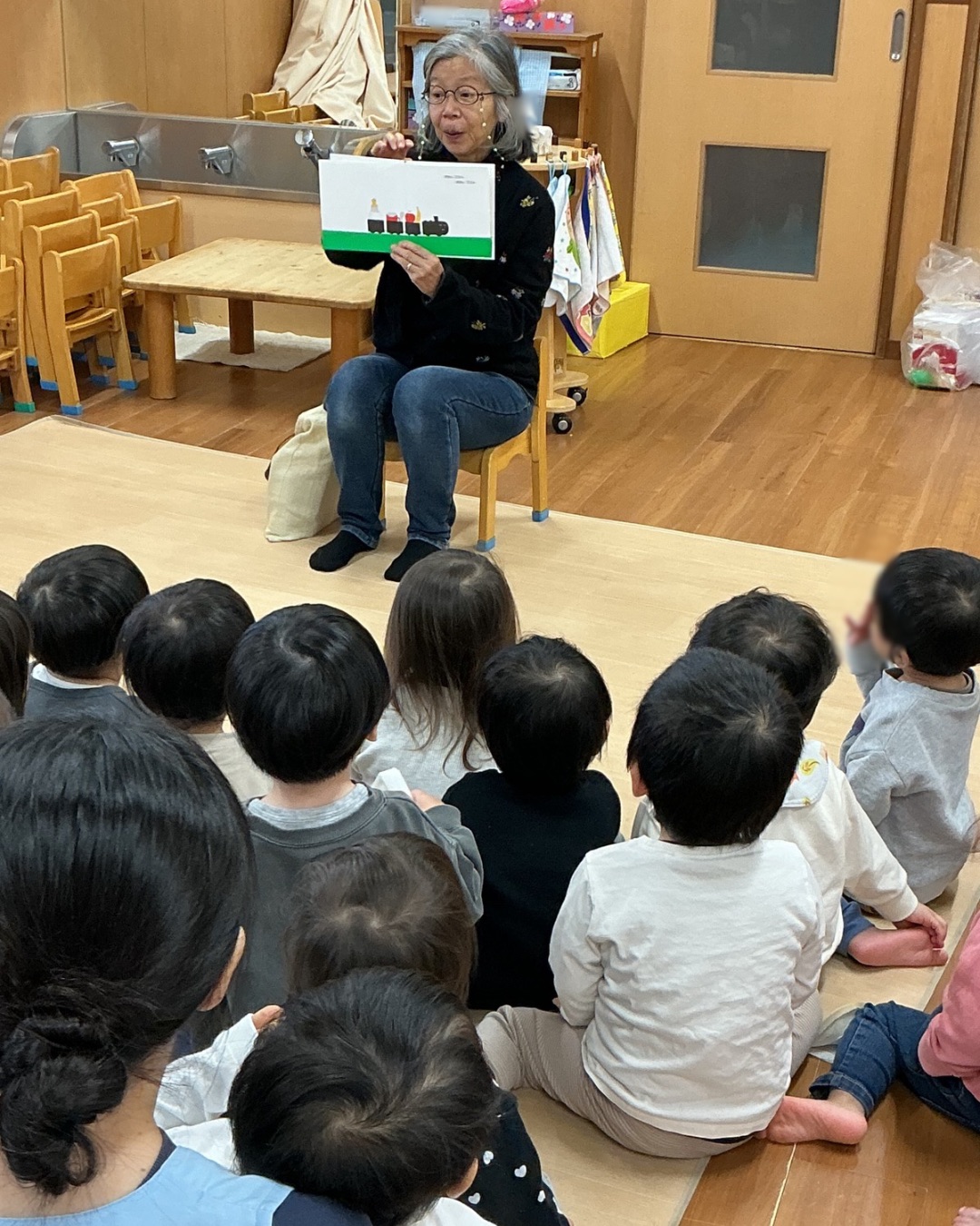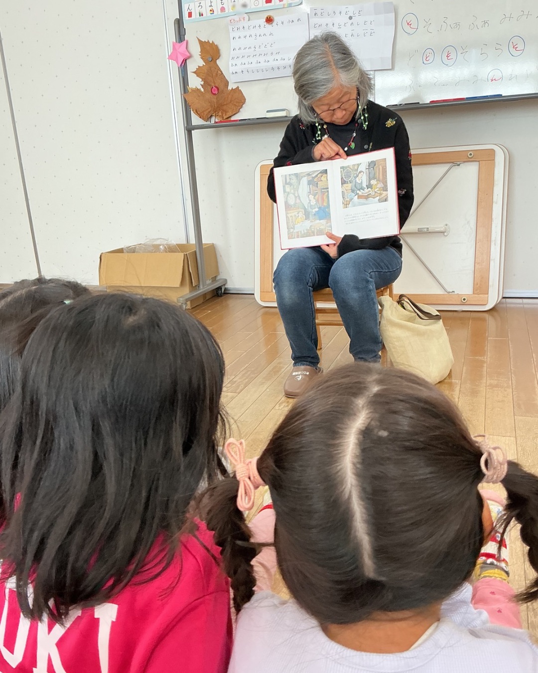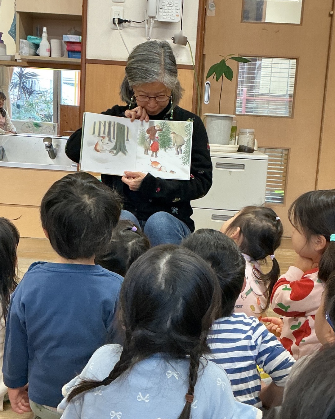 絵本作家のオスターグレン晴子さんに来ていただき、クリスマスにちなんだ絵本を中心にたくさん読んでもらいました。ページをめくるたびに大笑いしたり、ちょっと長い物語も真剣な表情で耳を傾けたりと、様々な表情を見せてくれました。次回は来年!どんな絵本を読んでくれるか、今から楽しみです。ホームページやインスタグラムなどで、たくさんの情報を発信していきたいと思います。是非、ご覧ください。