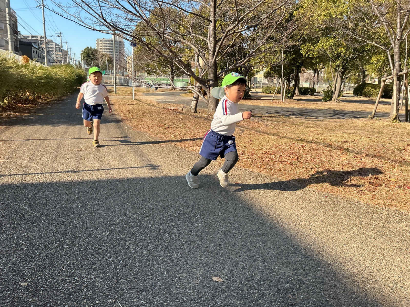 3~5歳児が小寄公園でマラソン大会を行いました。走る前から気合十分の子ども達は、スタートから猛ダッシュです。しかし、次第に自分のペースに戻り、諦めずに最後まで頑張って走りました。これから冬本番!!寒さに負けない身体作りを今後も行っていきます。ホームページやインスタグラムなどで、たくさんの情報を発信していきたいと思います。是非、ご覧ください。