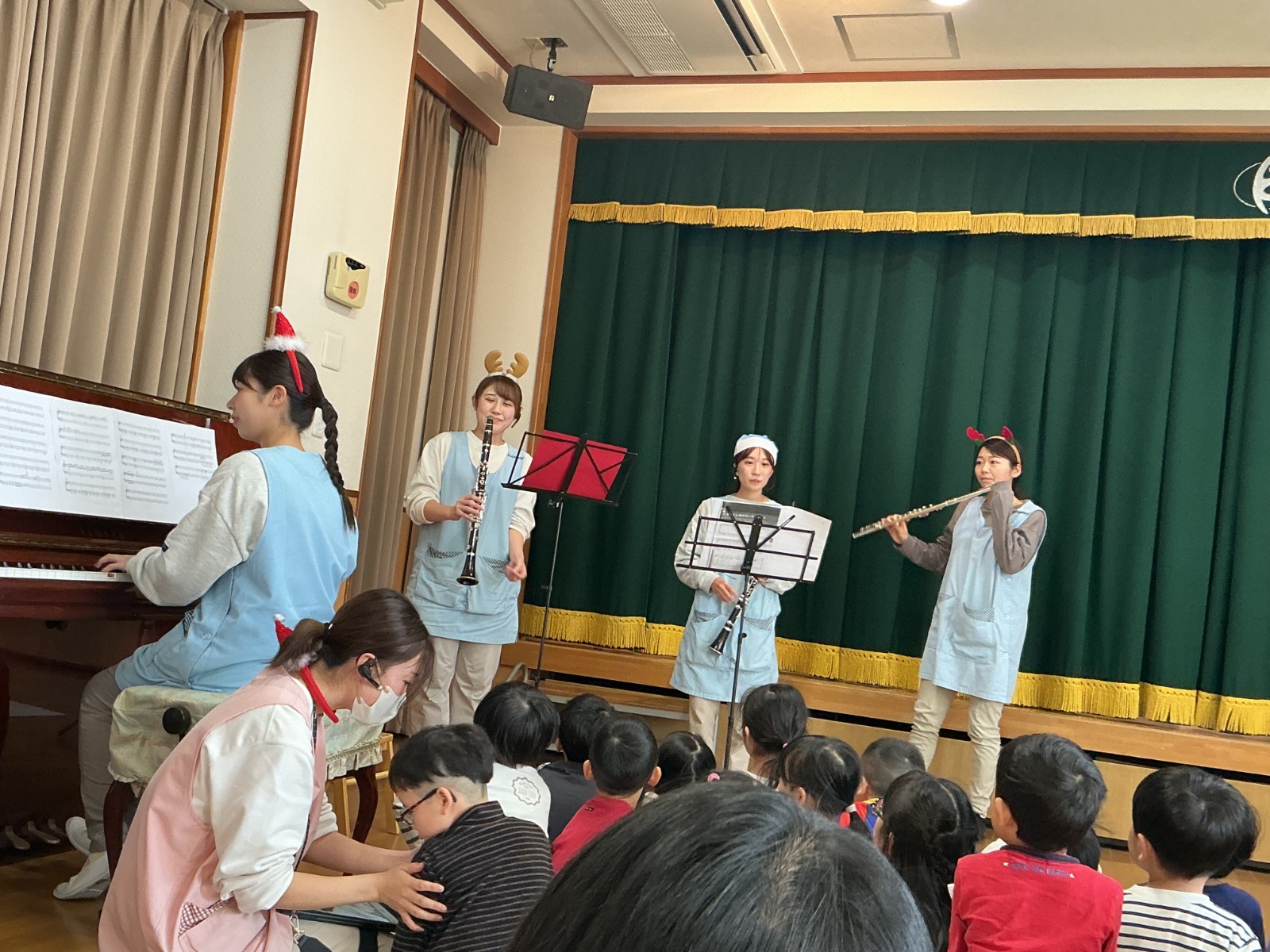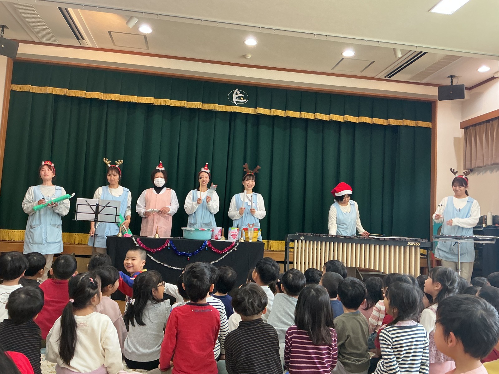 保育者からは、手作り楽器のクリスマスメドレーや、