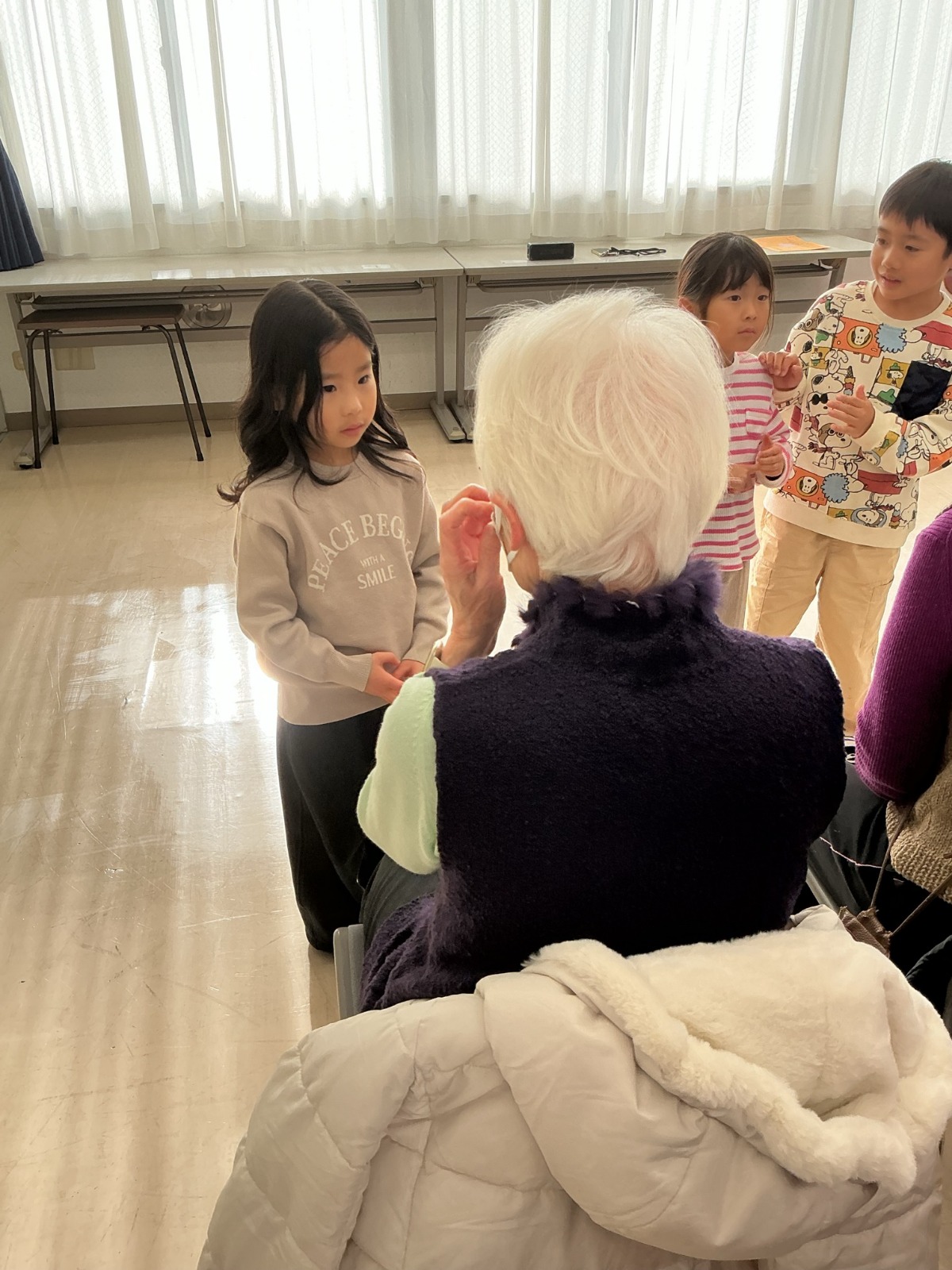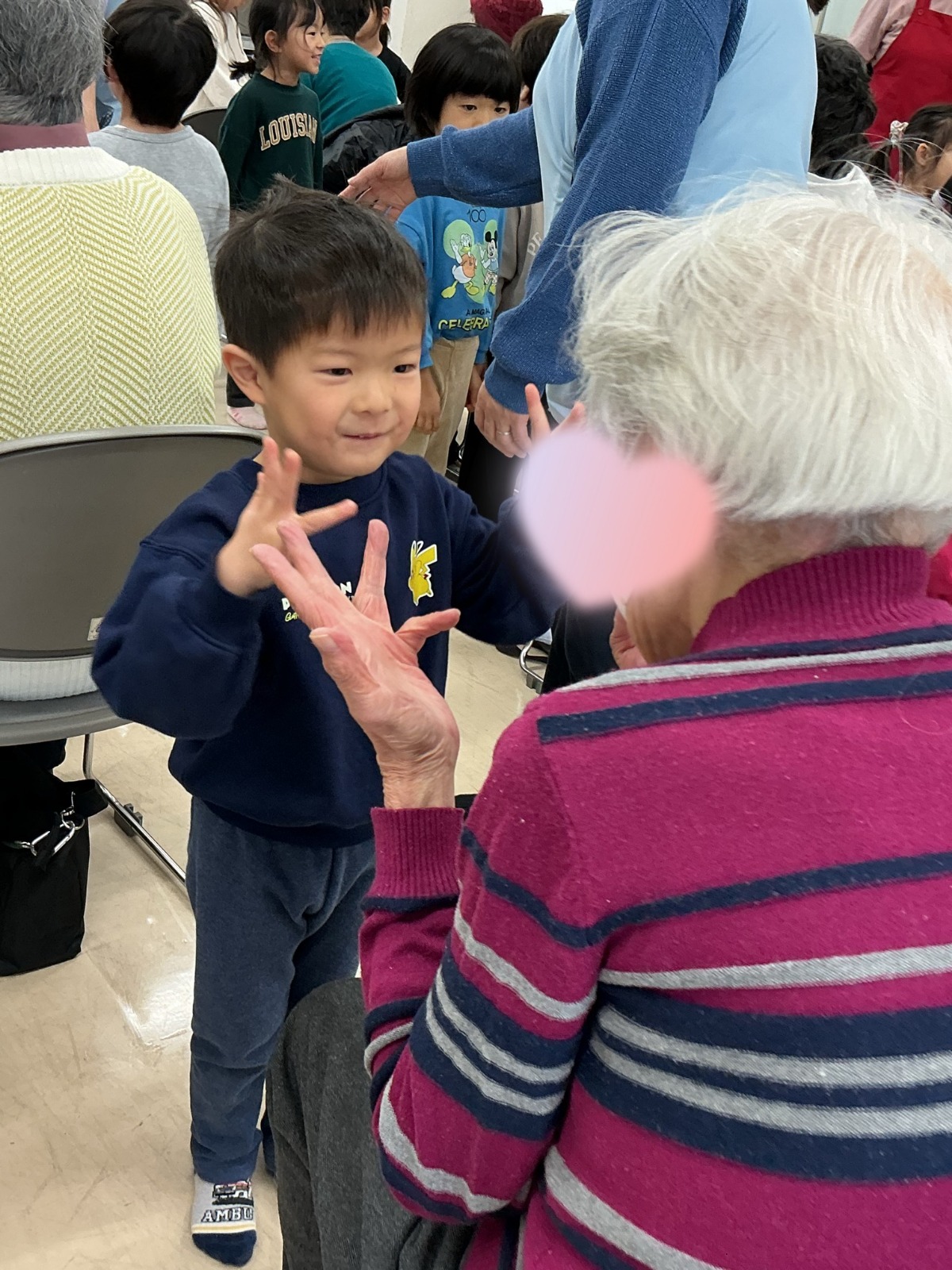 5歳児が地域のお年寄りとの交流会に参加しました。歌を披露すると、一緒に手拍子をしながら歌ってくれました。♪お寺のおしょうさんが~♪の歌に合わせて手遊びをする時には、互いに手をしっかり握り合って、まずは自己紹介♪手遊びの最後のじゃんけんでは、勝った負けたの大盛り上がりでした。ホームページやインスタグラムなどで、たくさんの情報を発信していきたいと思います。是非、ご覧ください。