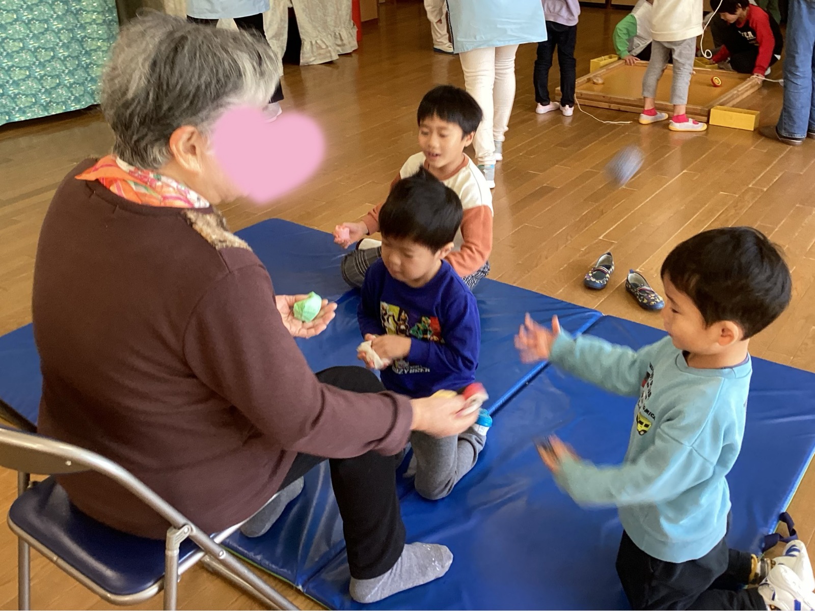 地域の方に来ていただき、コマ回しやけん玉、おはじき、百人一首など昔遊びを一緒に楽しみました。ご高齢の方の中には、「ひ孫と同じ年だから、元気をもらいに来た」と仰られる方もおり、みんな楽しい時間を過ごしました。ホームページやインスタグラムなどで、たくさんの情報を発信していきたいと思います。是非、ご覧ください。