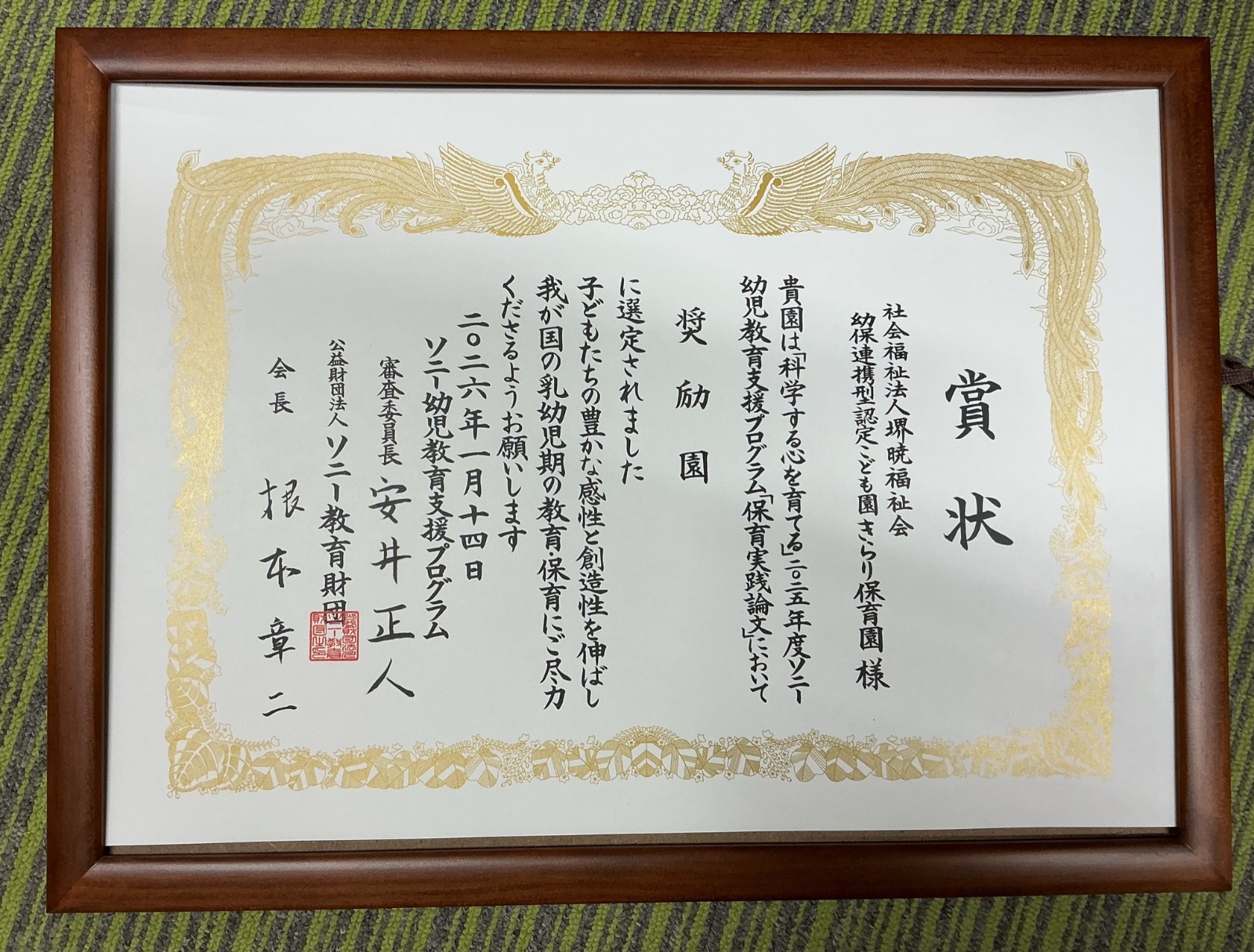 ソニー教育財団が主催する、2025年ソニー幼児教育支援プログラム「科学する心」に応募したところ、