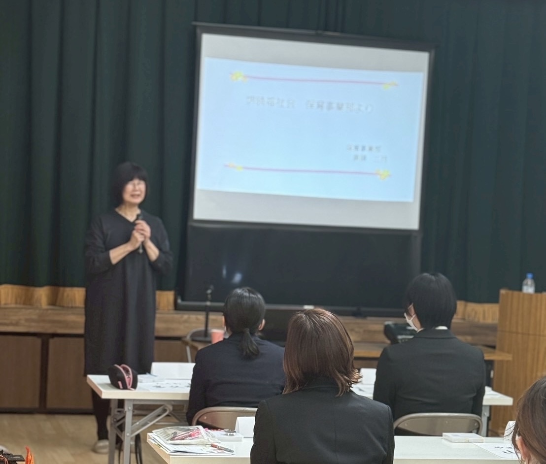 2026年度 第1回新任研を開催しました。参加者は2026年度に入職する新卒をはじめ、2025年度に途中入職した職員も対象で、12名が参加しています(2名が体調不良)。午前中は、事業部合同で行い、午後から、保育事業部、高齢介護事業部に分かれての研修になりました。