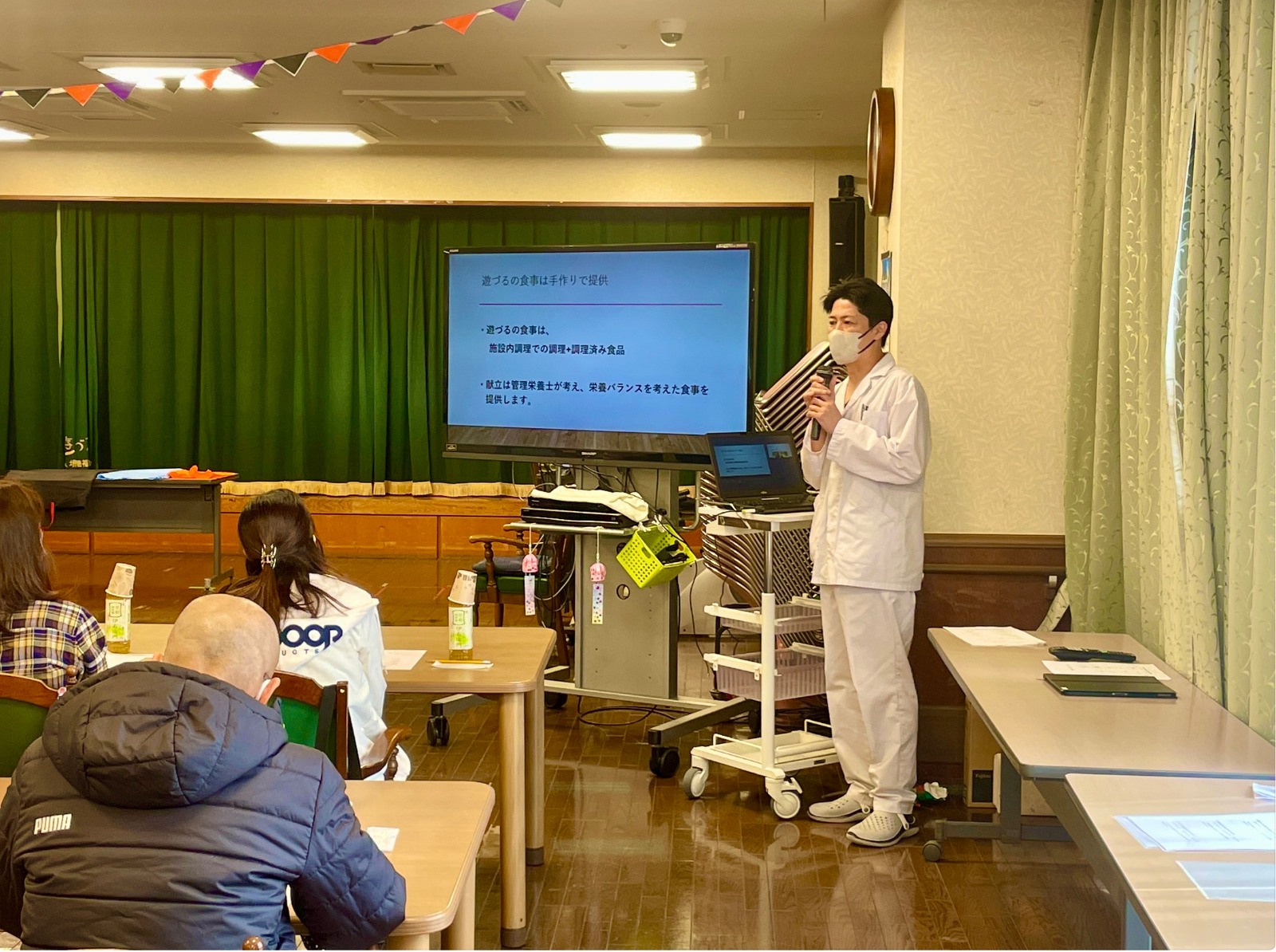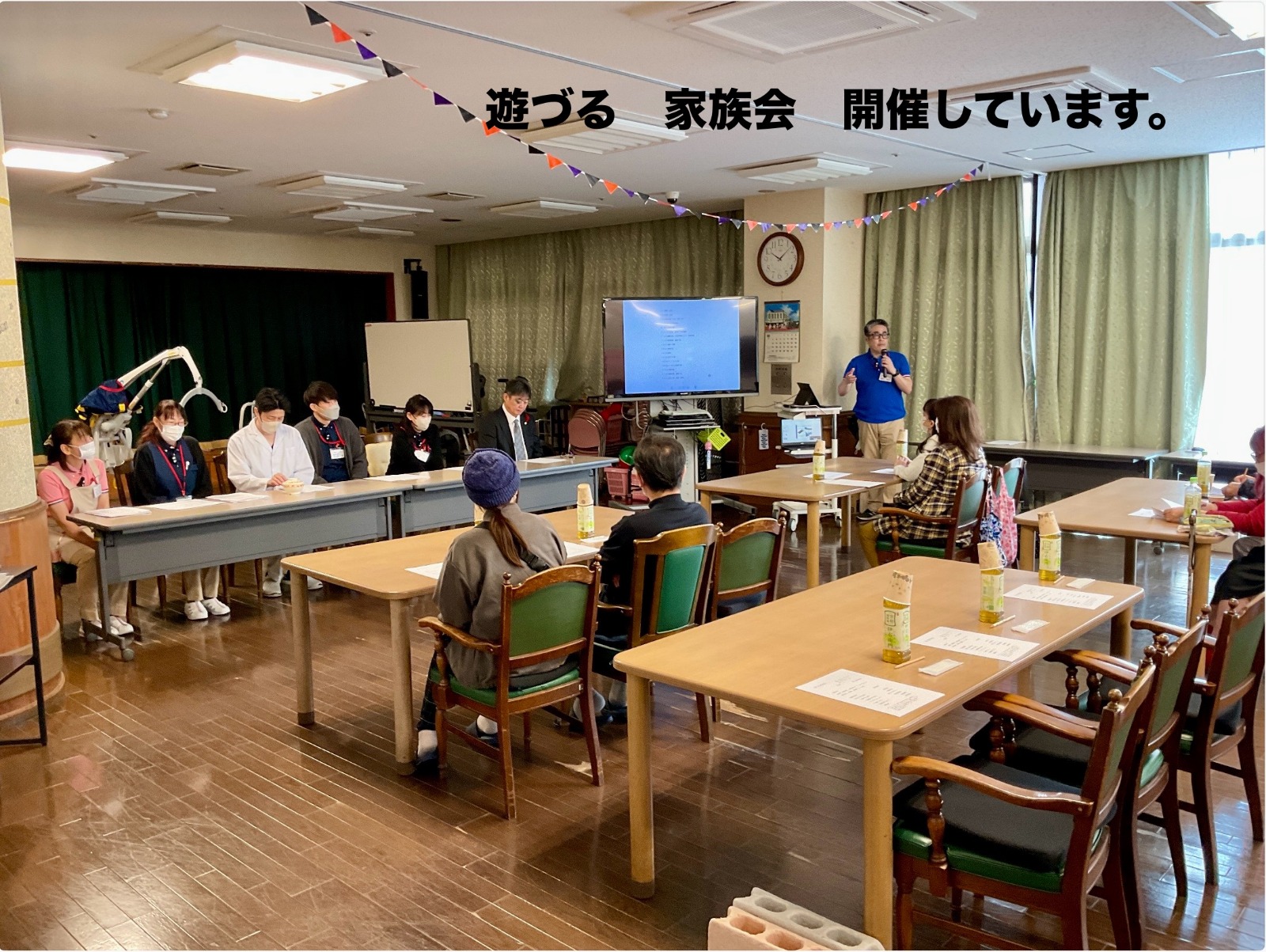 今年は、19名のご家族にお越しいただき、介護職員、生活相談員、介護支援専門員、看護師、管理栄養士から入所者のご様子や取り組み、感染症の対応等について説明を行いました。
