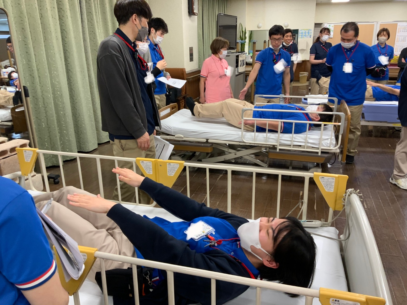 4月14日(火)に施設内研修会を開催しました!今回は、現在法人で取り組んでいる活動やポジショニングについて学習しました。拘縮について実際にベッド上で体験することで、沢山の学びがありました。今後も拘縮予防のため、ノーリフティングケアやポジショニングについて取り組んでいきます。